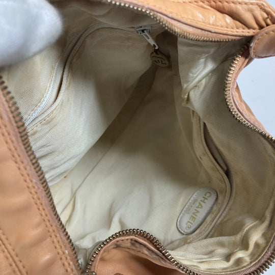 CHANEL Handbag leather beige Plat Stick handle CC COCO Mark