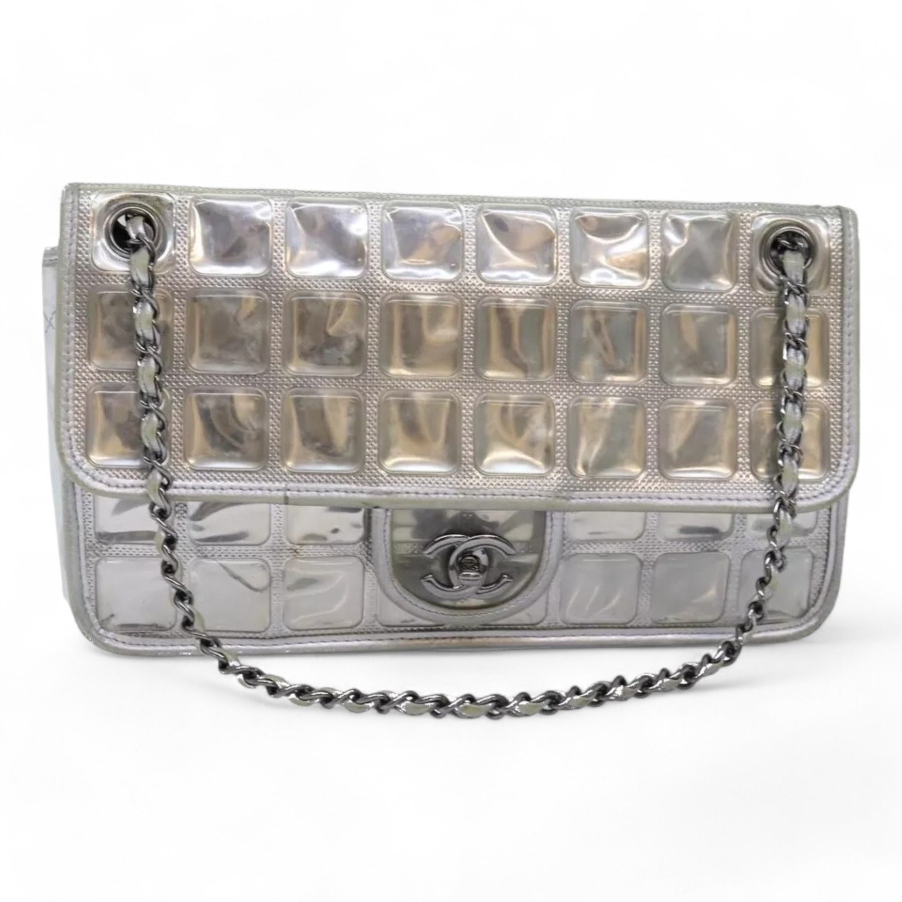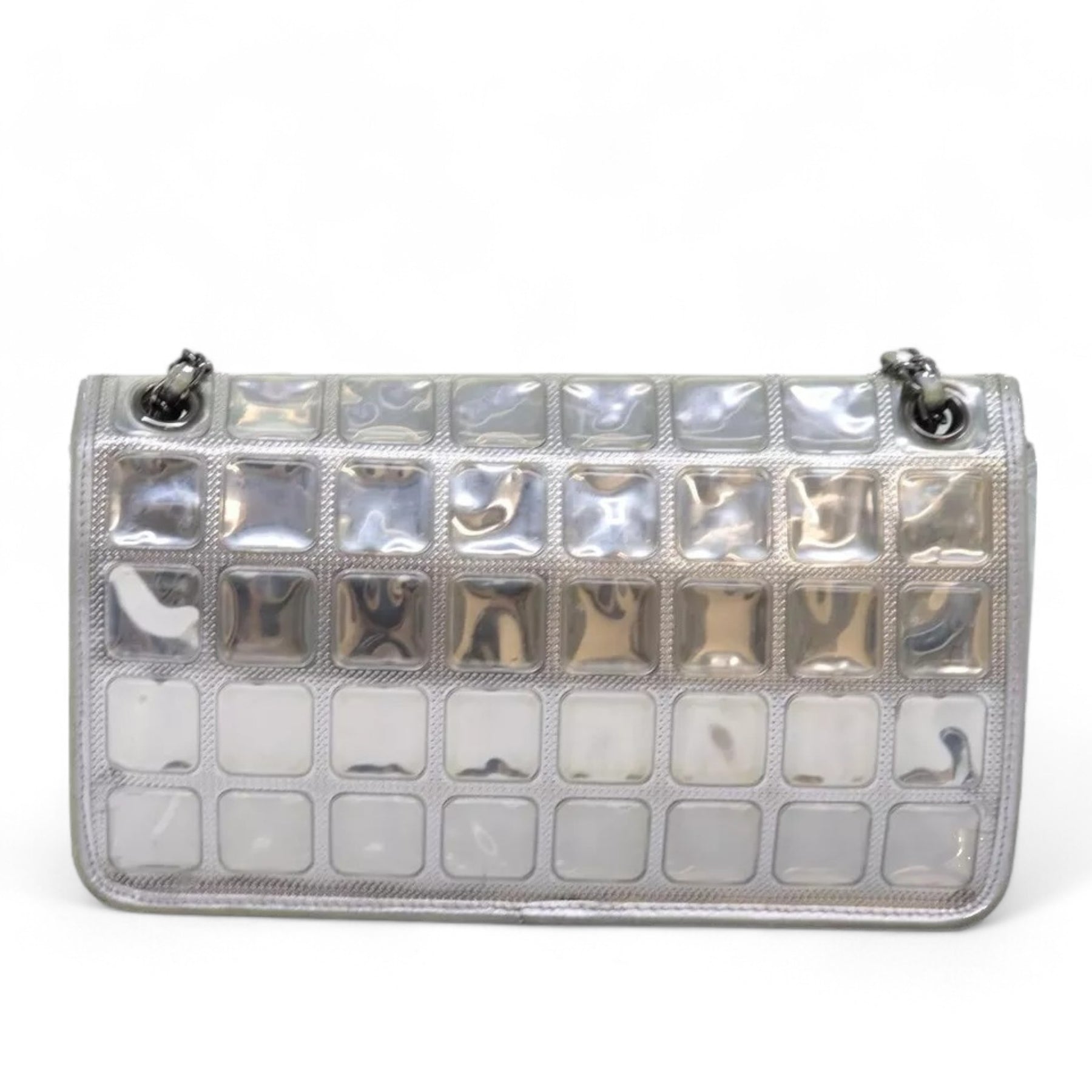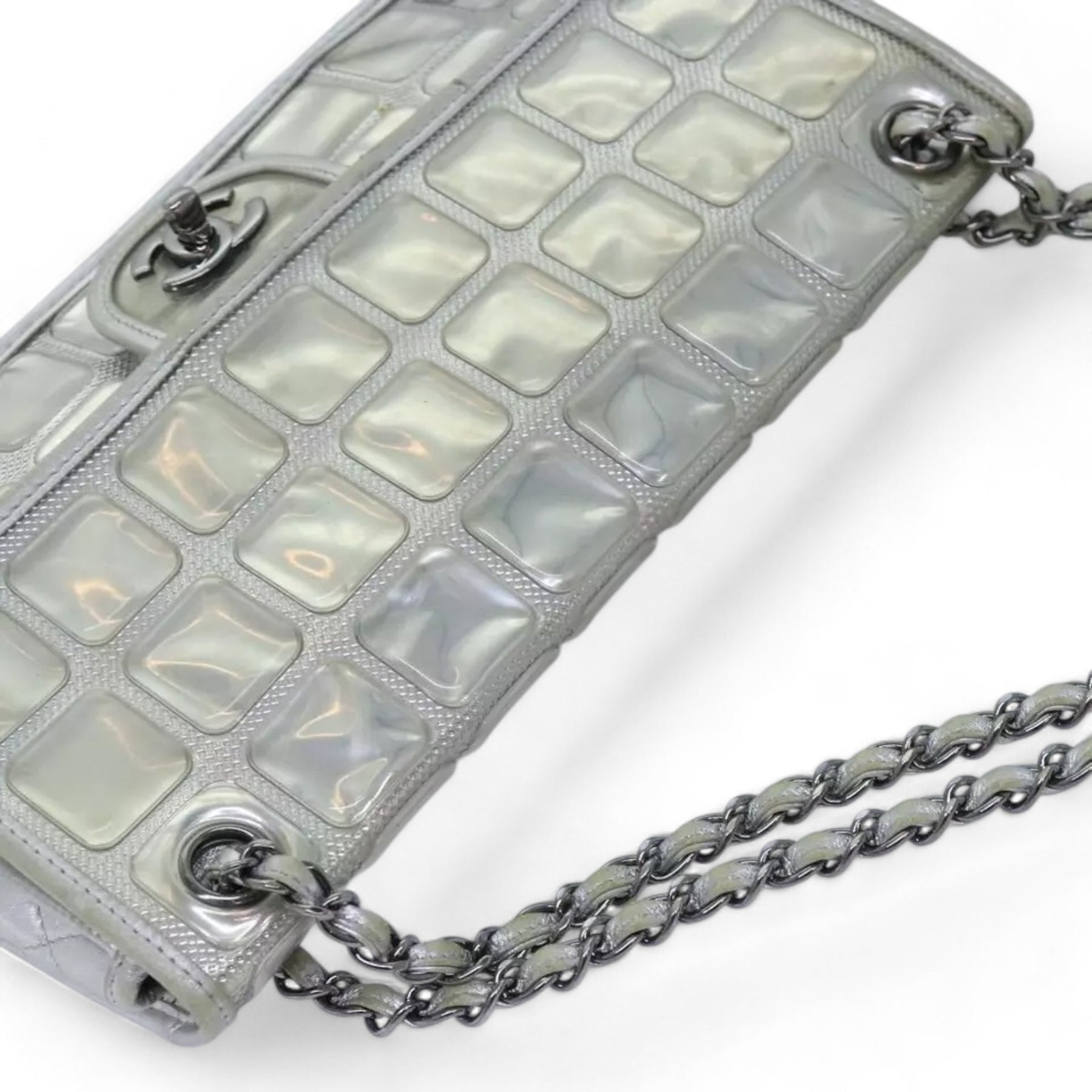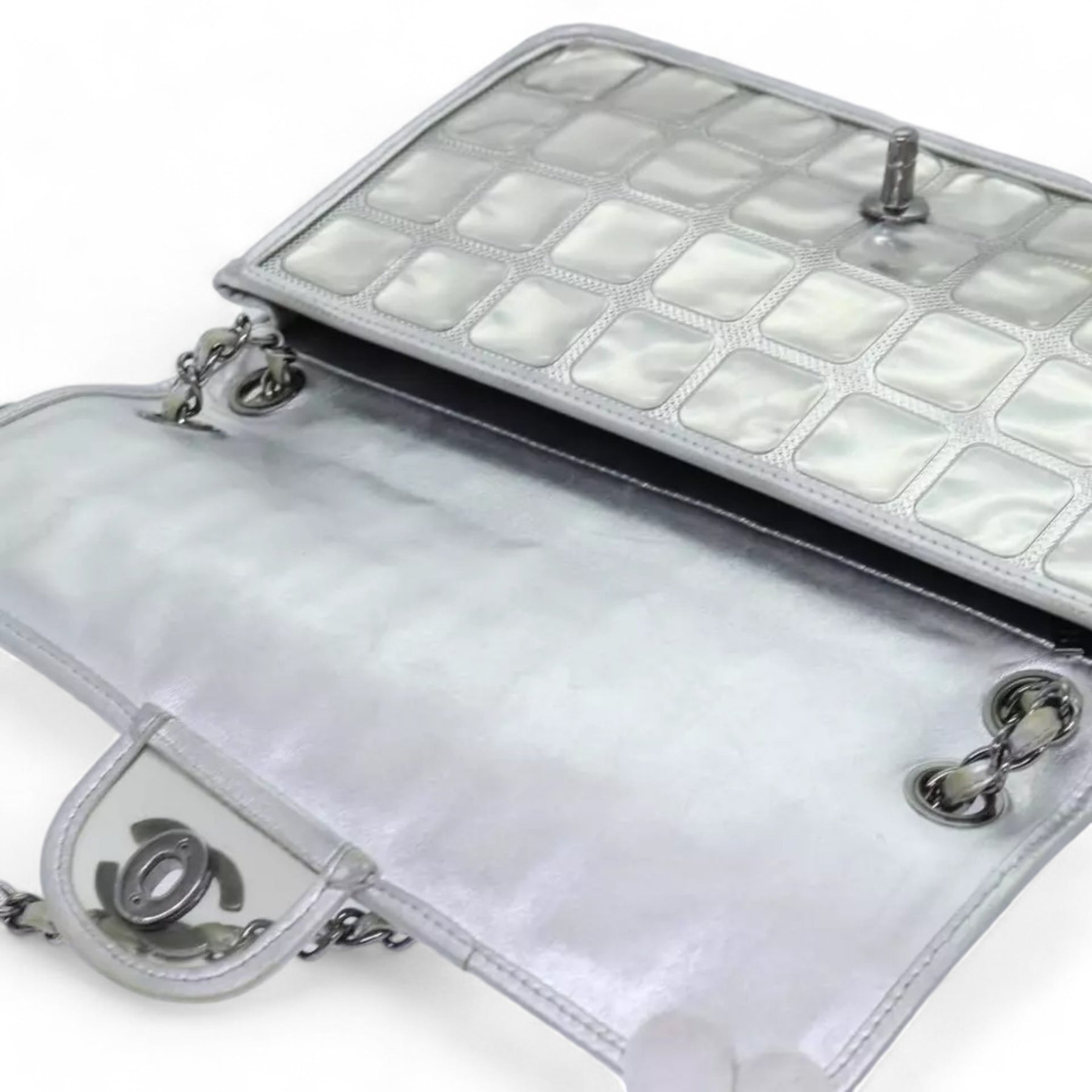 CHANEL Ice Cube Chain Turn Lock Bag Vinyl Silver Shoulder Bag