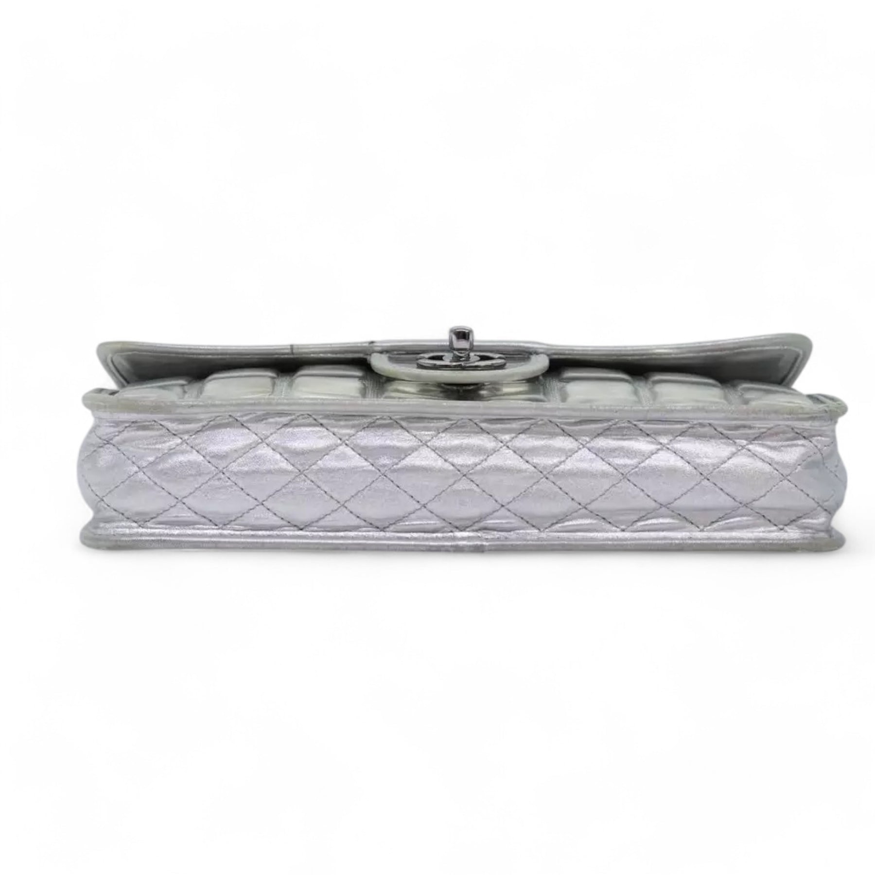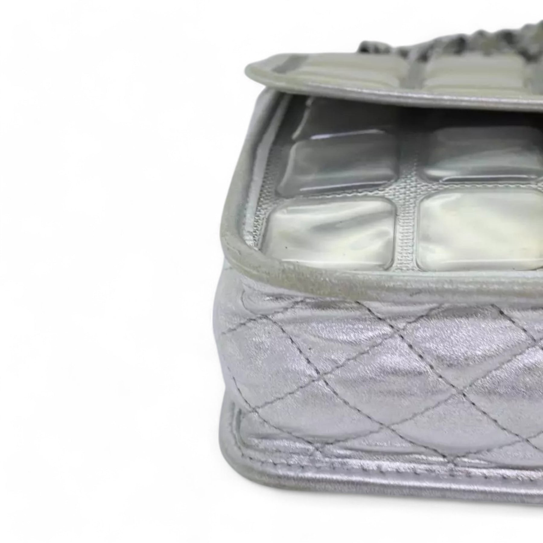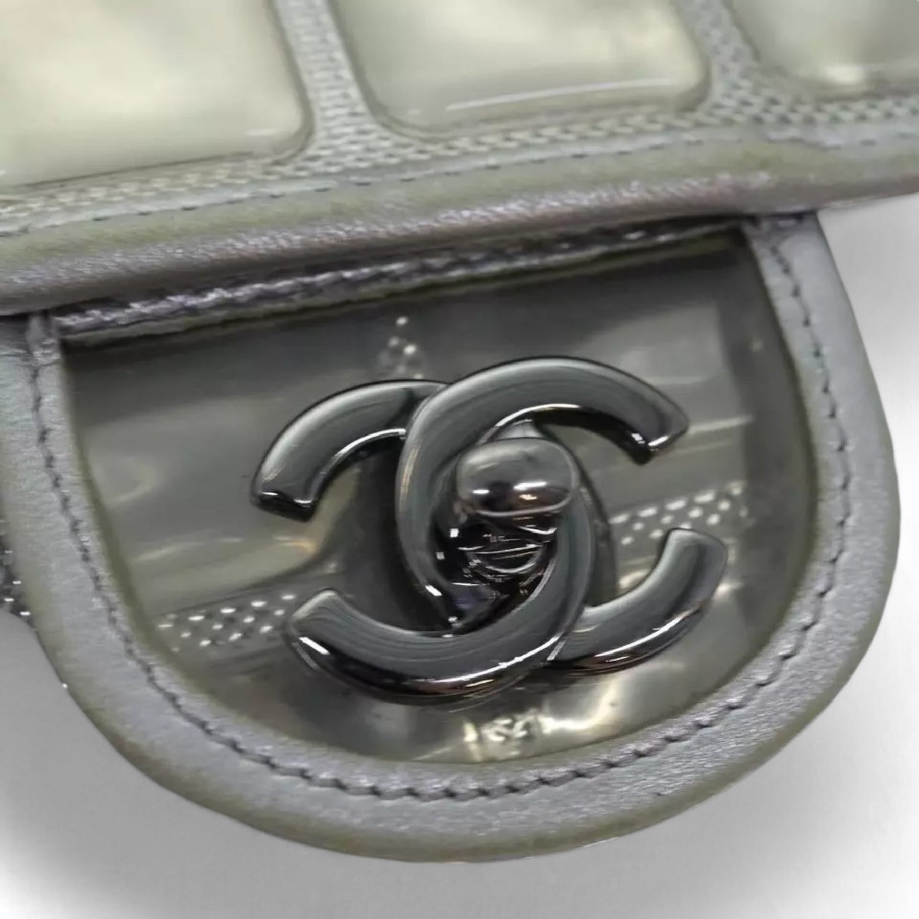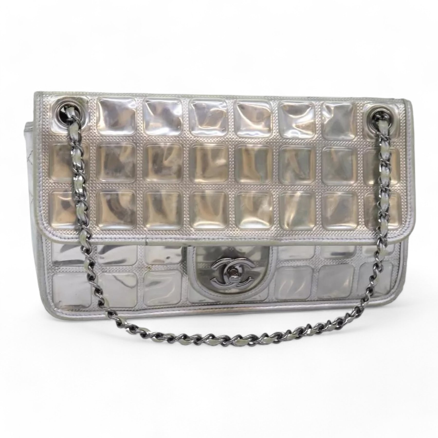 CHANEL Ice Cube Chain Turn Lock Bag Vinyl Silver Shoulder Bag