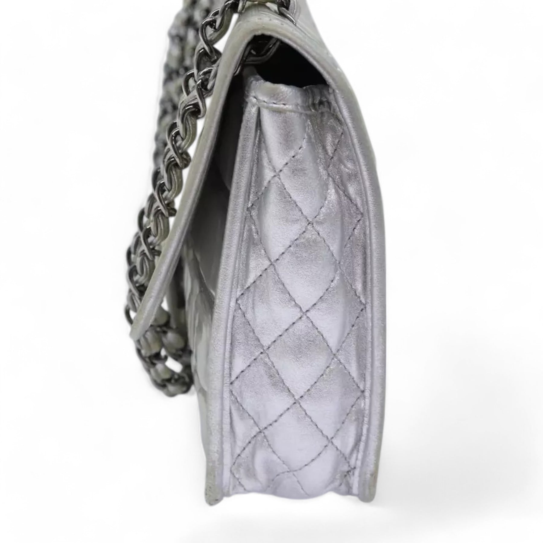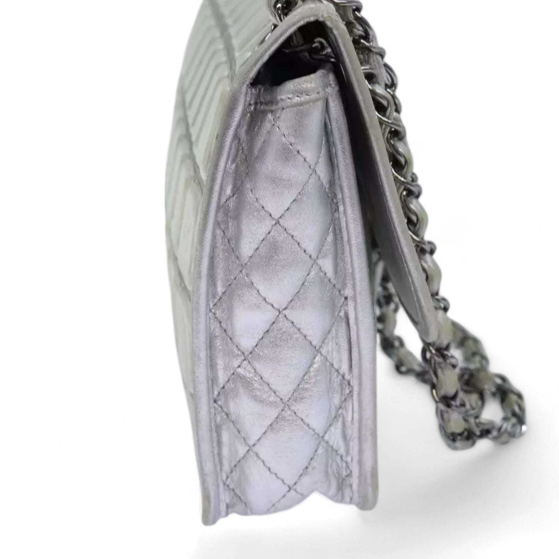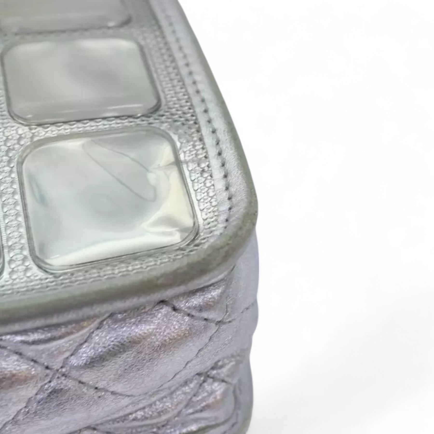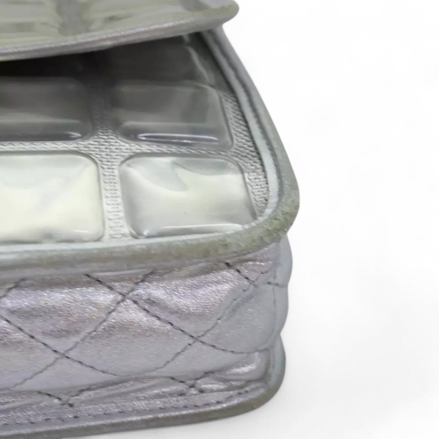 CHANEL Ice Cube Chain Turn Lock Bag Vinyl Silver Shoulder Bag