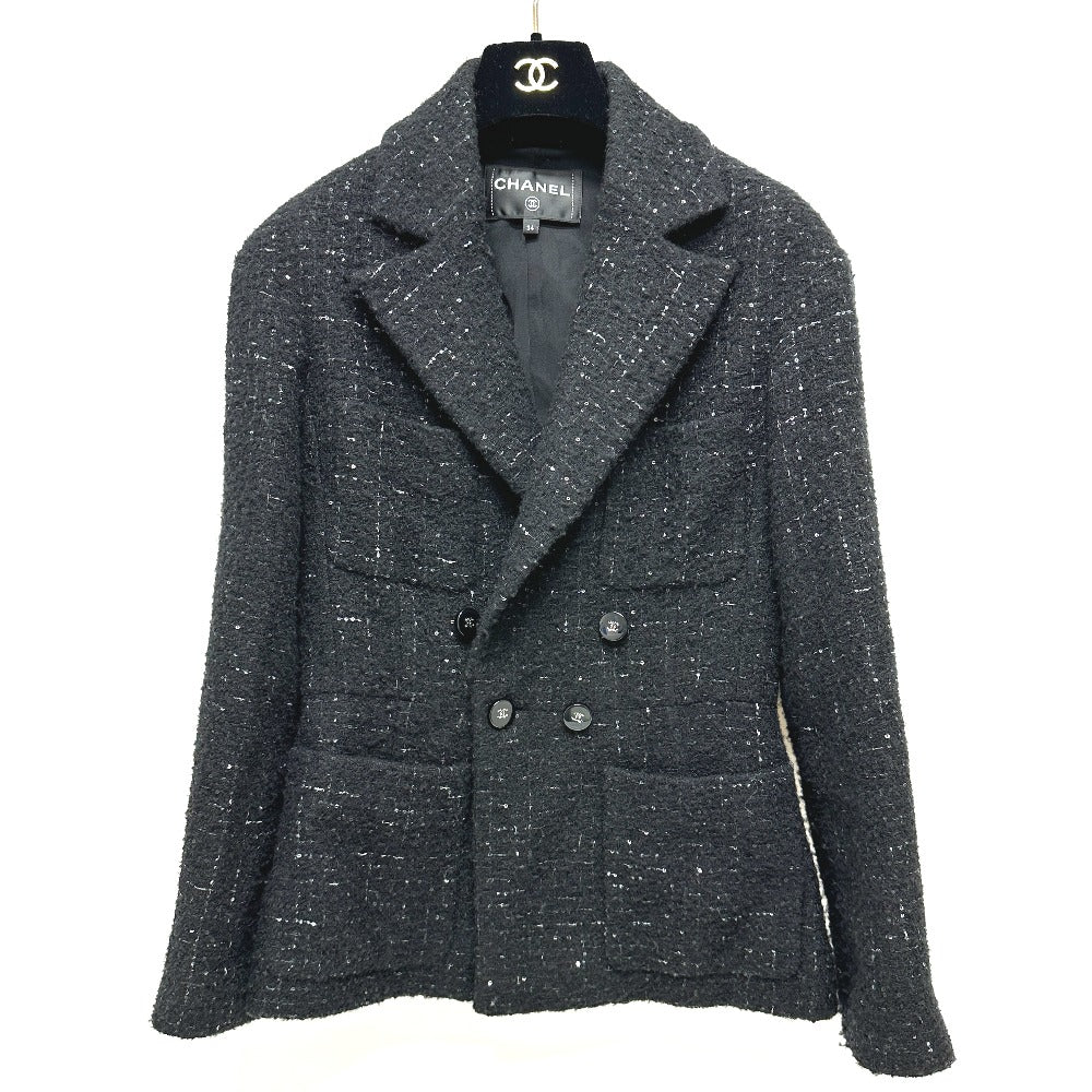 CHANEL Jacket P78012 tweed black 24B Glitter Tweed 34