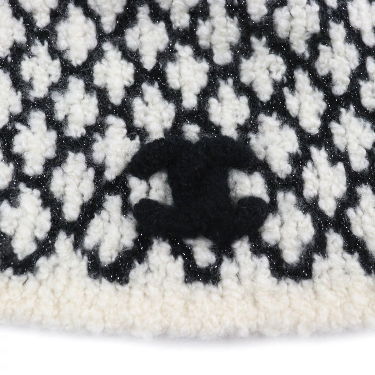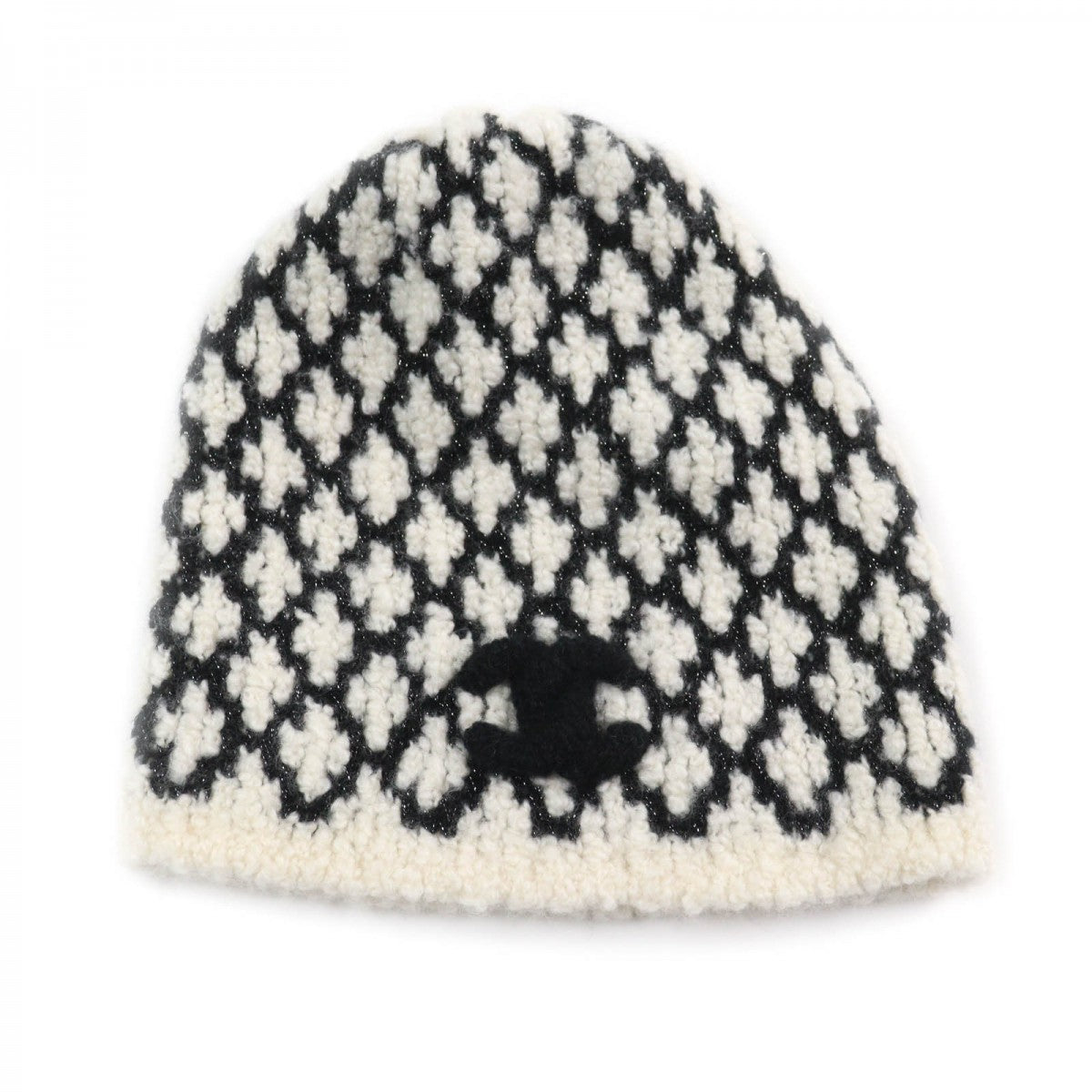 CHANEL Knit cap cashmere White black