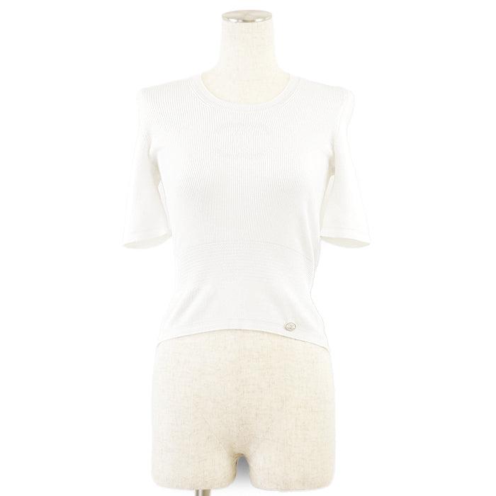 CHANEL knit 85% cotton, 15% polyester white 21P P70497 Women 36 Used Authentic