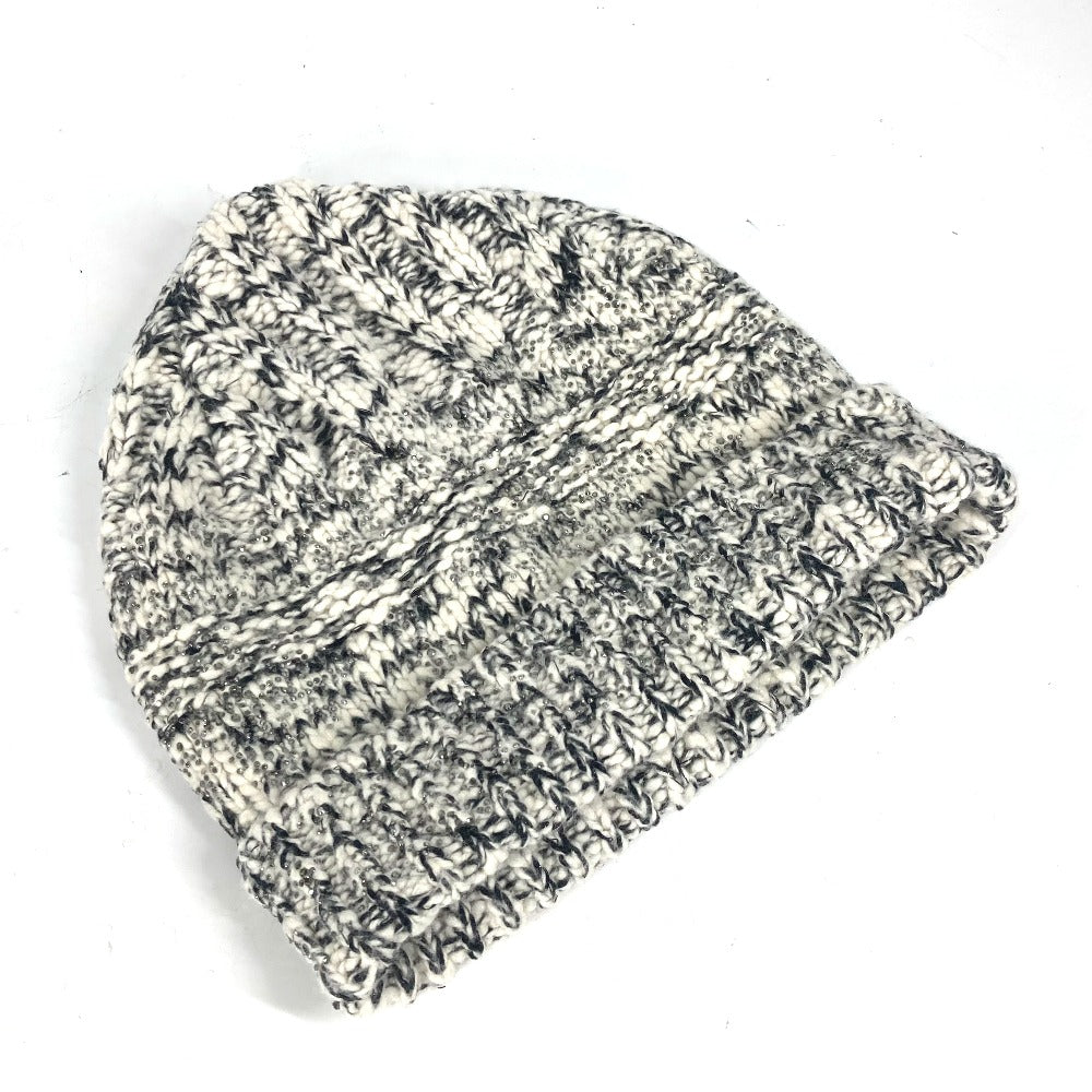 CHANEL Knit hat Wool / cashmere black Rhinestone Women Used Authentic