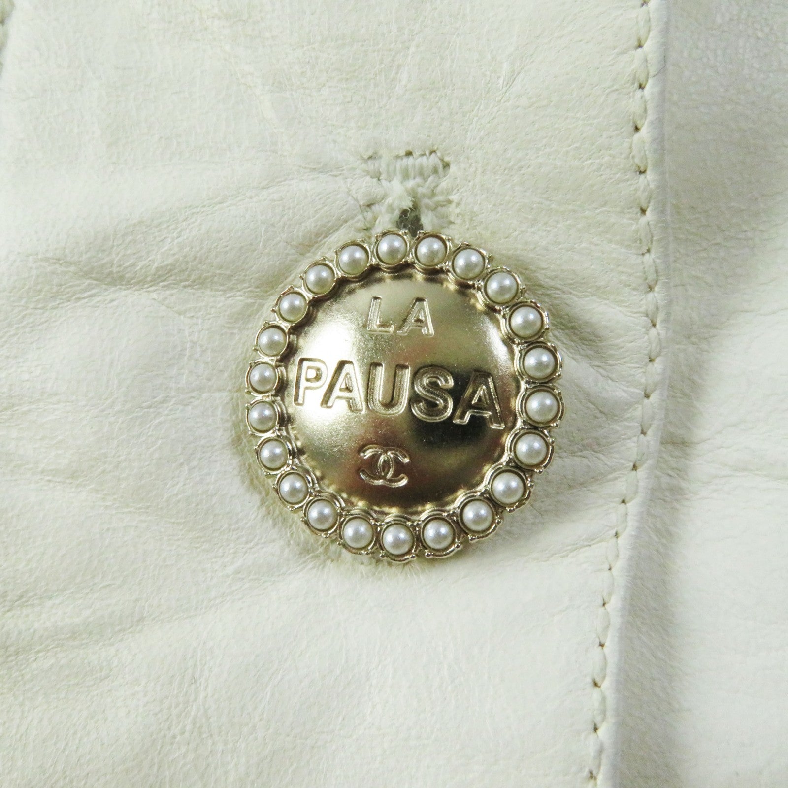 CHANEL leather jacket P60304 Outer: 100% lambskin; Lining: 75% cotton, 25% silk Ivory LA PAUSA Women 34 Used Authentic