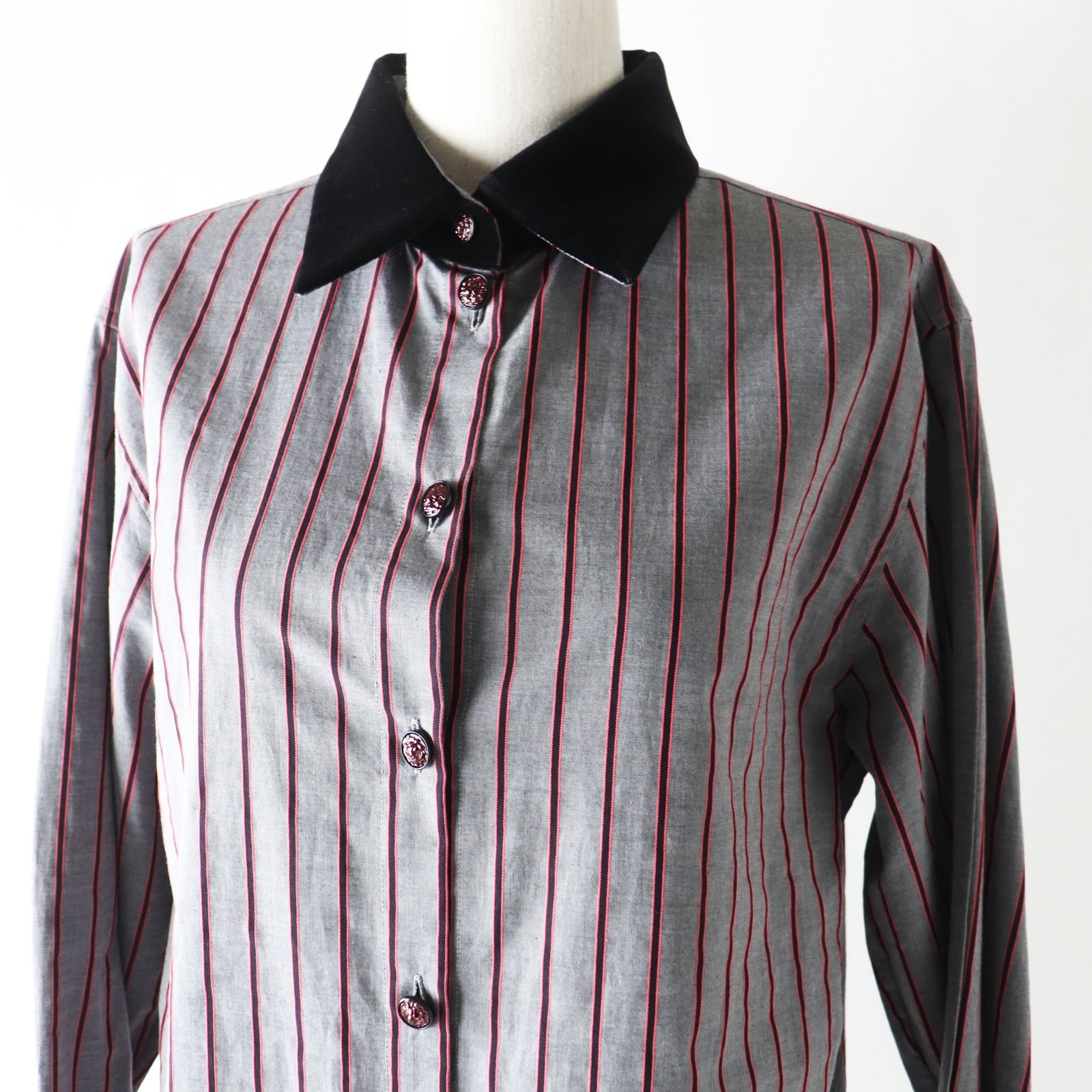 CHANEL Long sleeve shirt 22B P73409 Outer: 96% cotton, Outer: 4% polyester, Part: 71% cotton, Part: 29% silk Gray x Pink x Black Women 36 Used Authentic