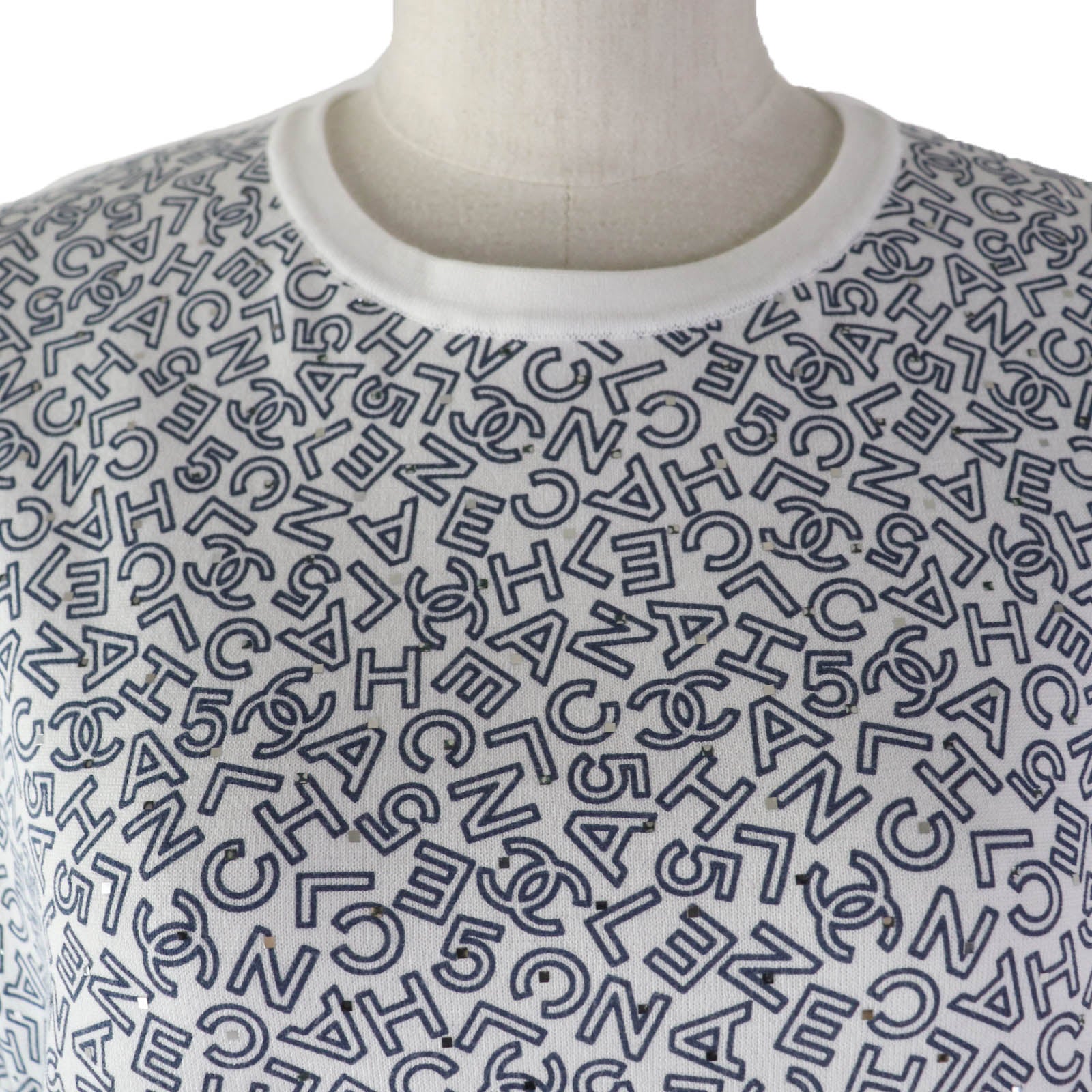 CHANEL Long-sleeved T-shirt P70441 Main: 100% cotton White navy Women 42 Used Authentic