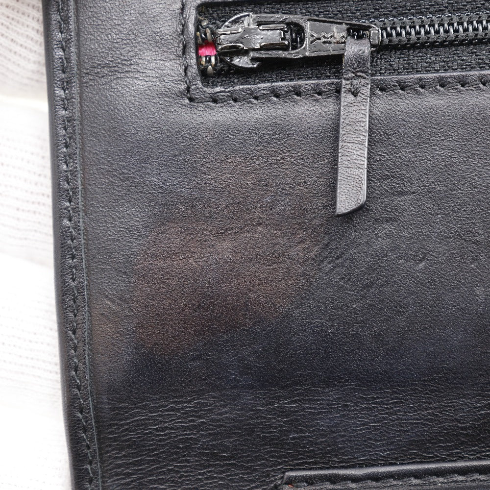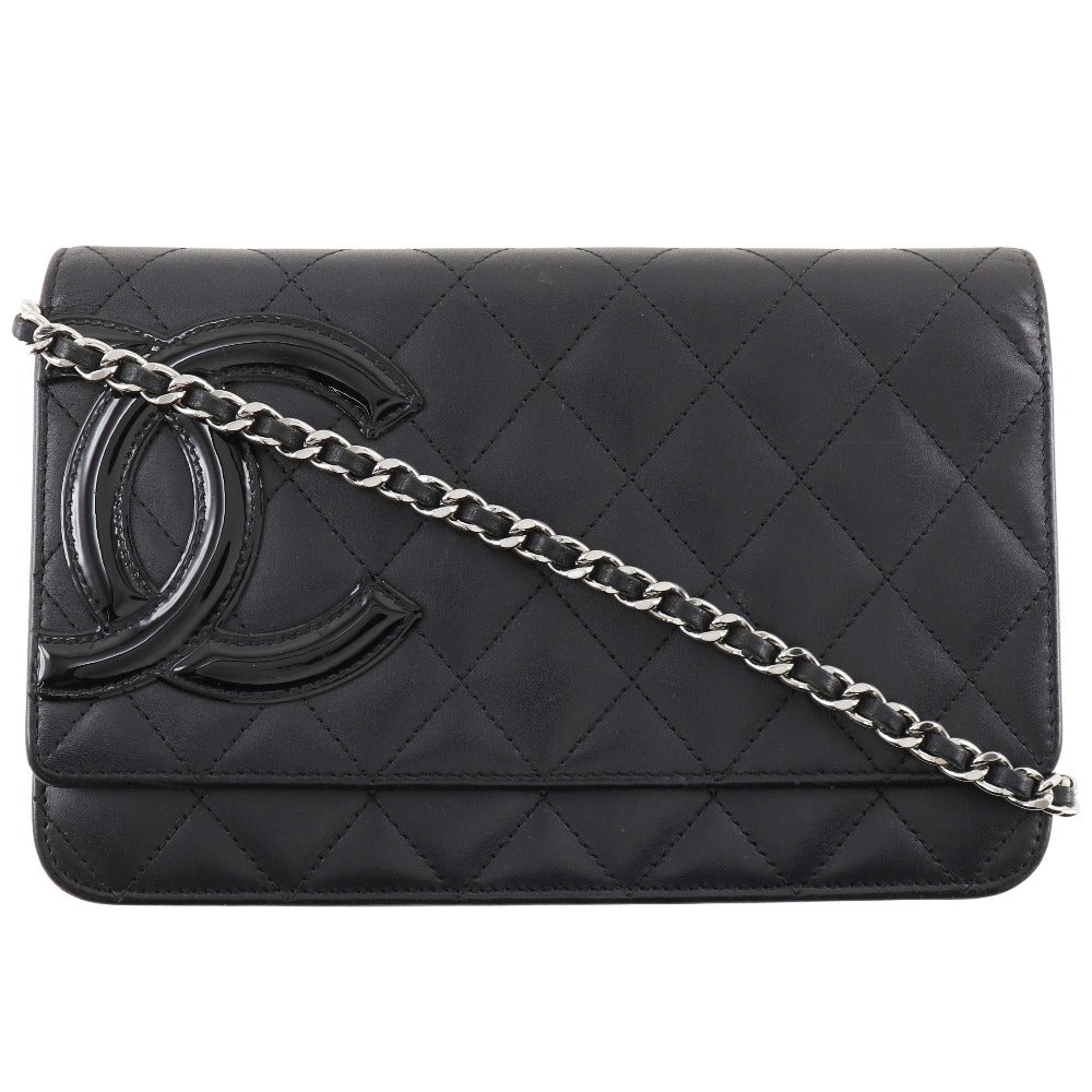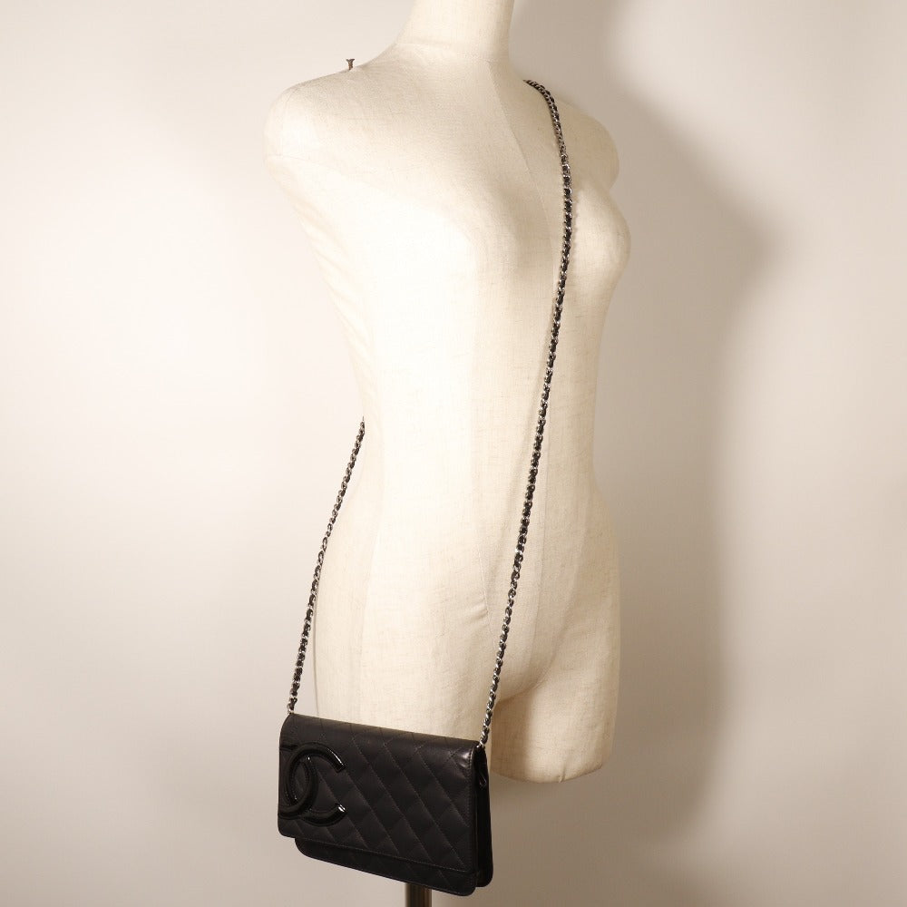 CHANEL Long Wallet Purse A46646 Calfskin, enamel black Cambon line Chain wallet Women Used Authentic