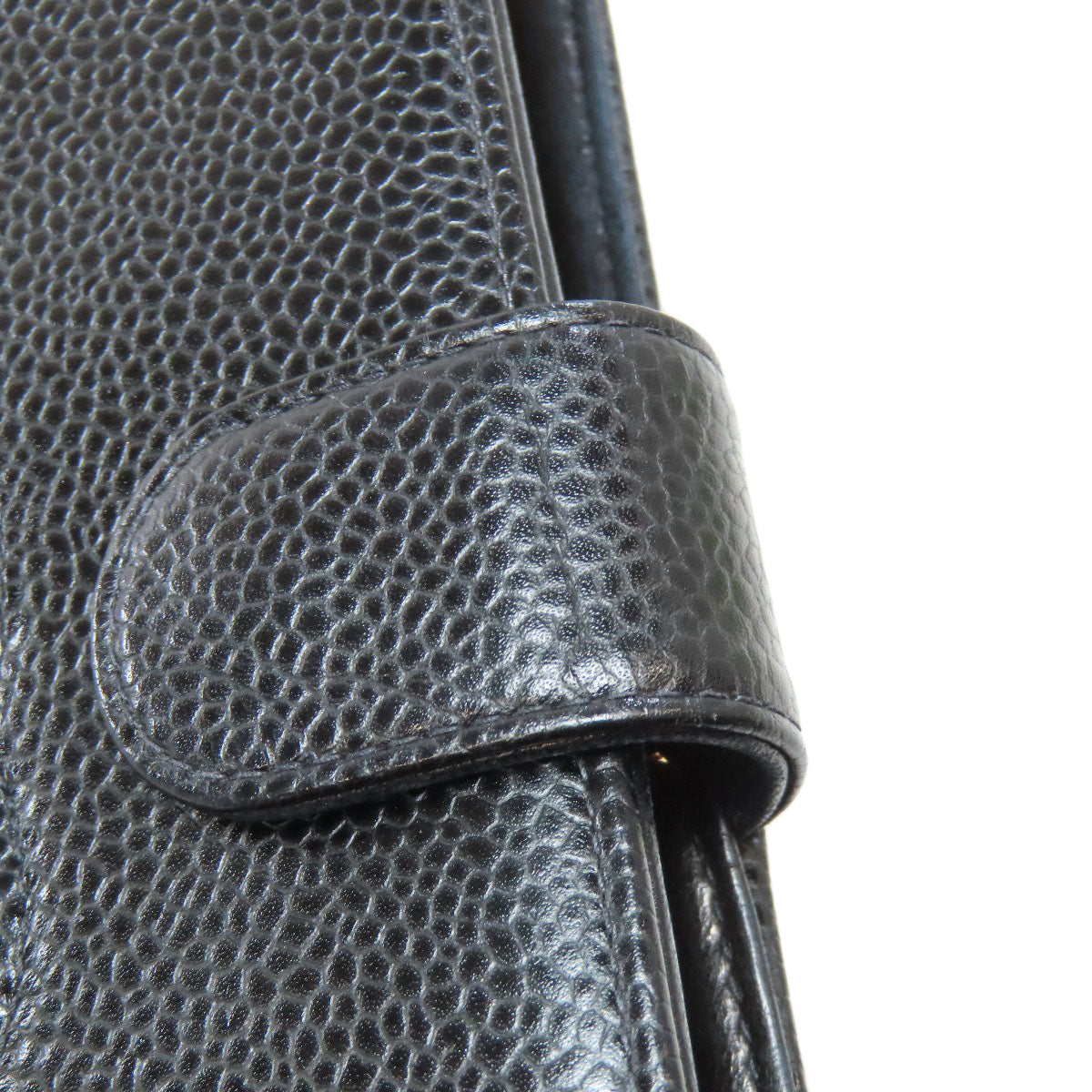 CHANEL Long Wallet Purse Grained Calfskin Skin black COCO Mark Gold Metal Women Used Authentic