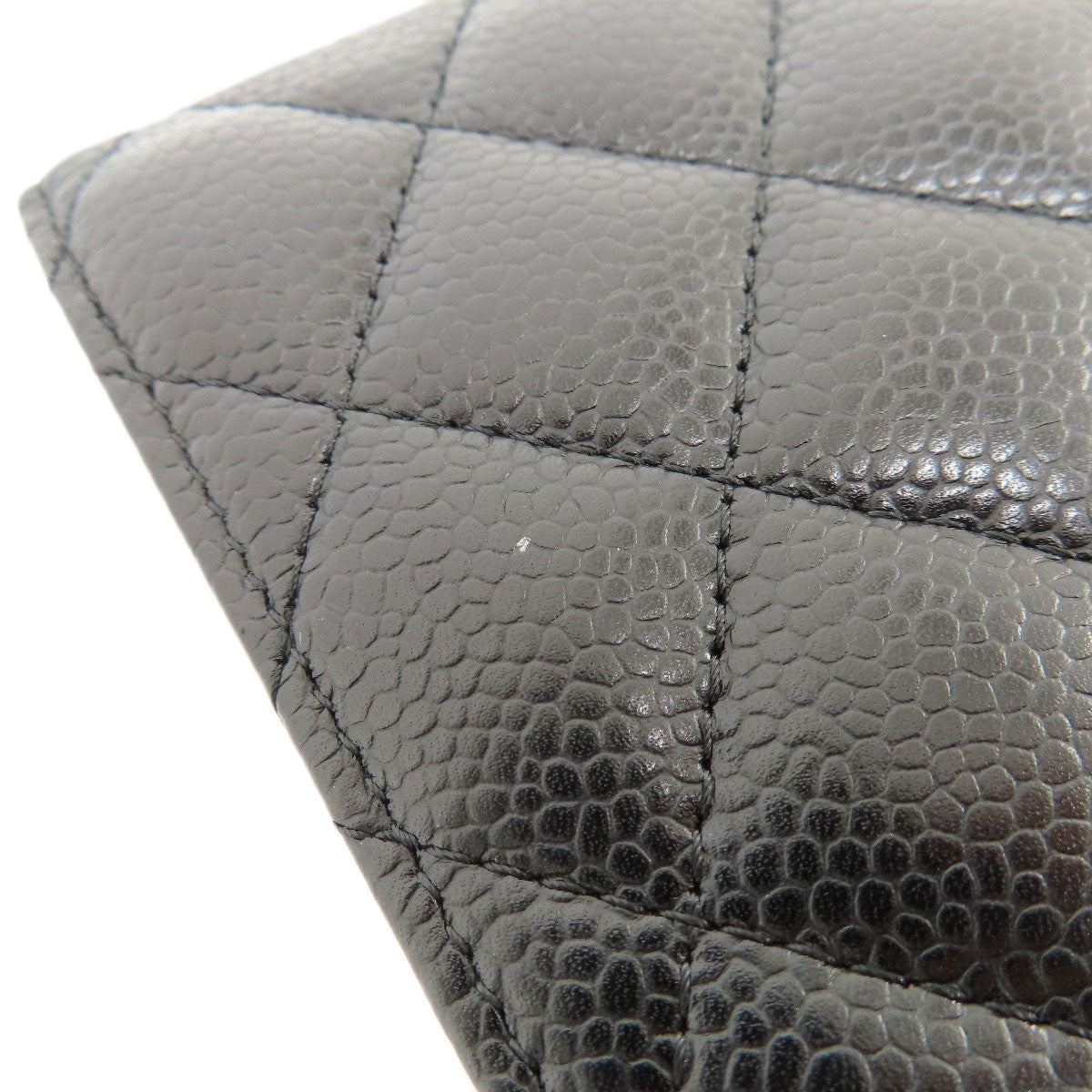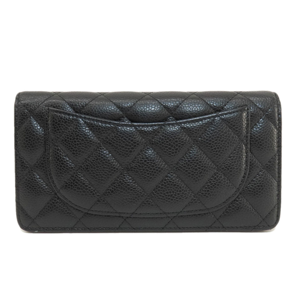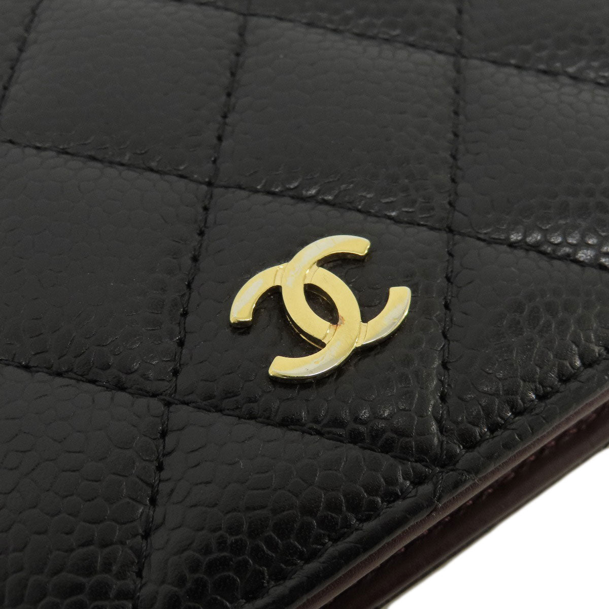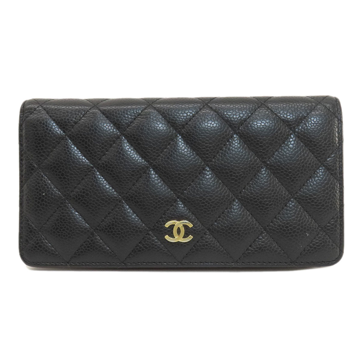 CHANEL Long Wallet Purse Caviar skin black Matelasse COCO Mark Gold Metal