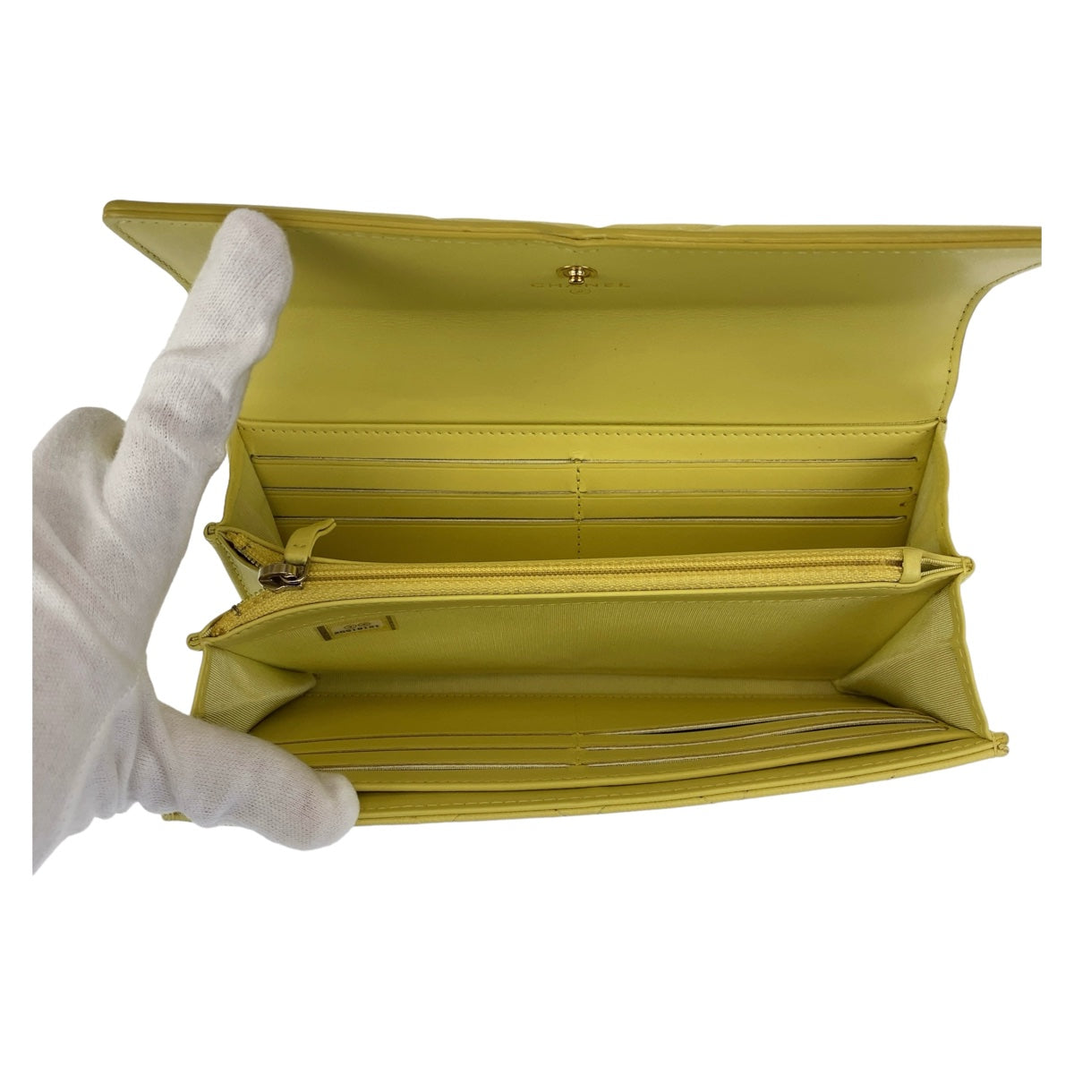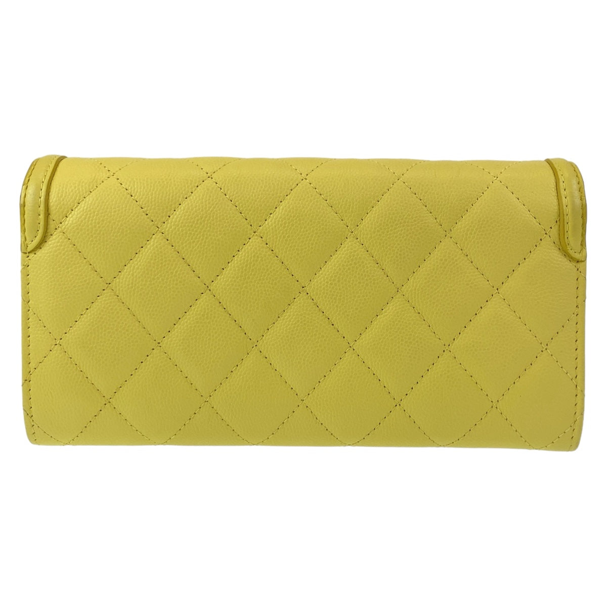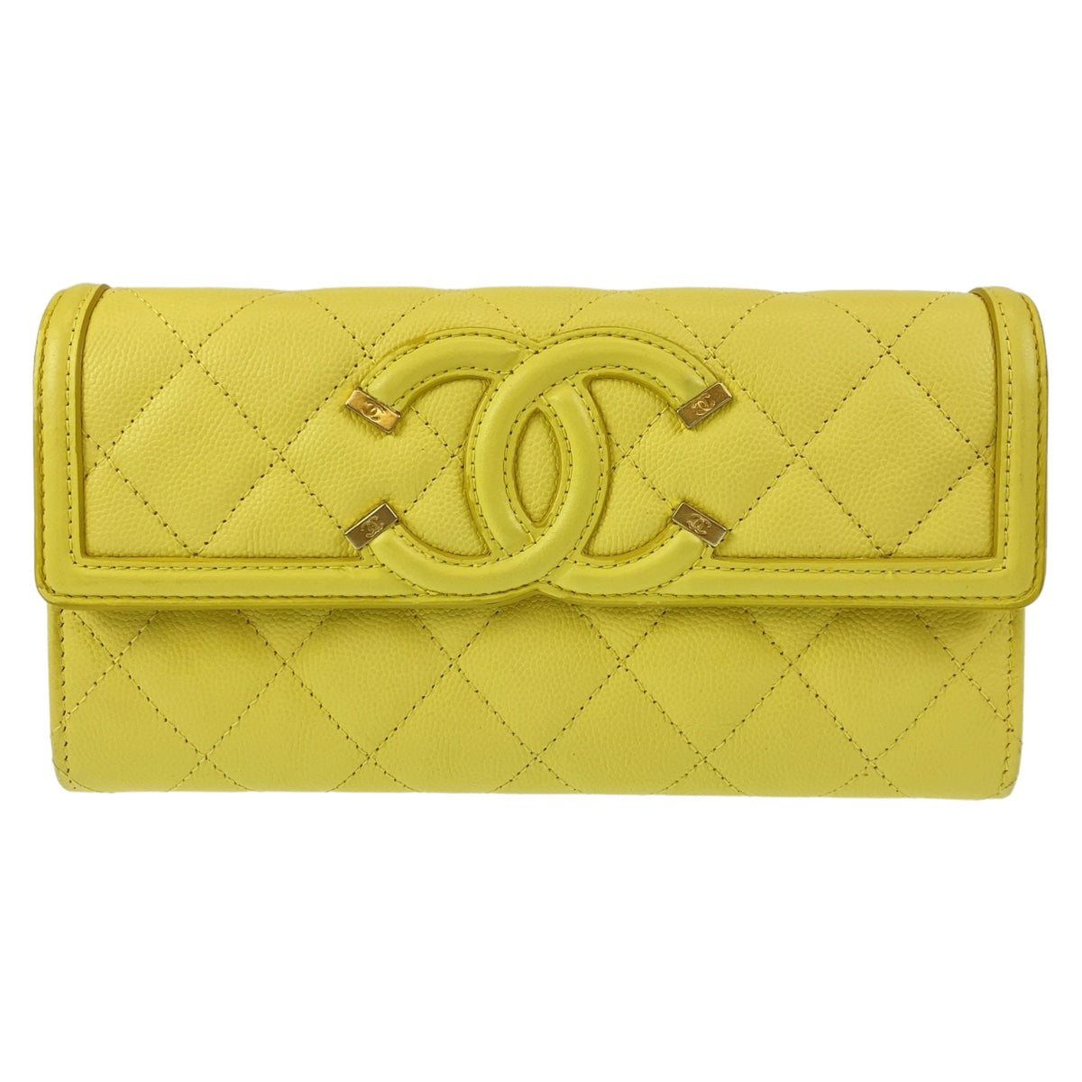 CHANEL Long Wallet Purse Caviar skin Yellow Gold Metal Long Wallet Purse CC filigree Women Used Authentic