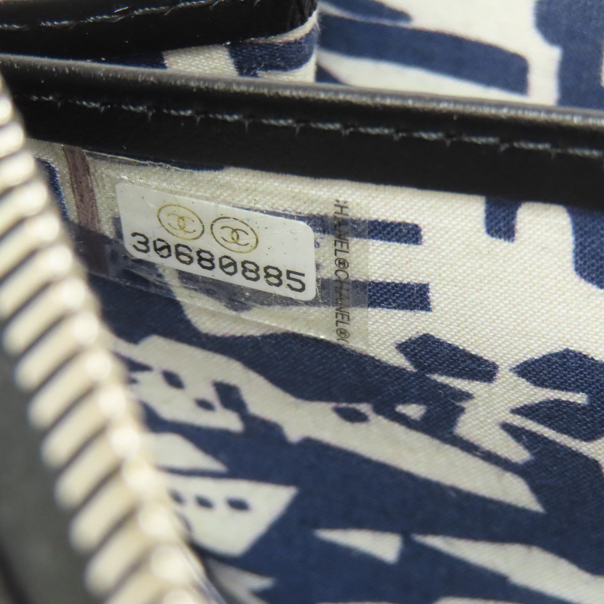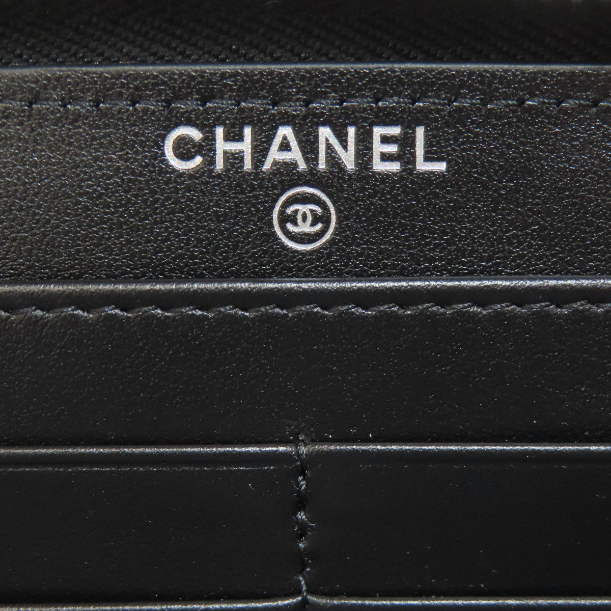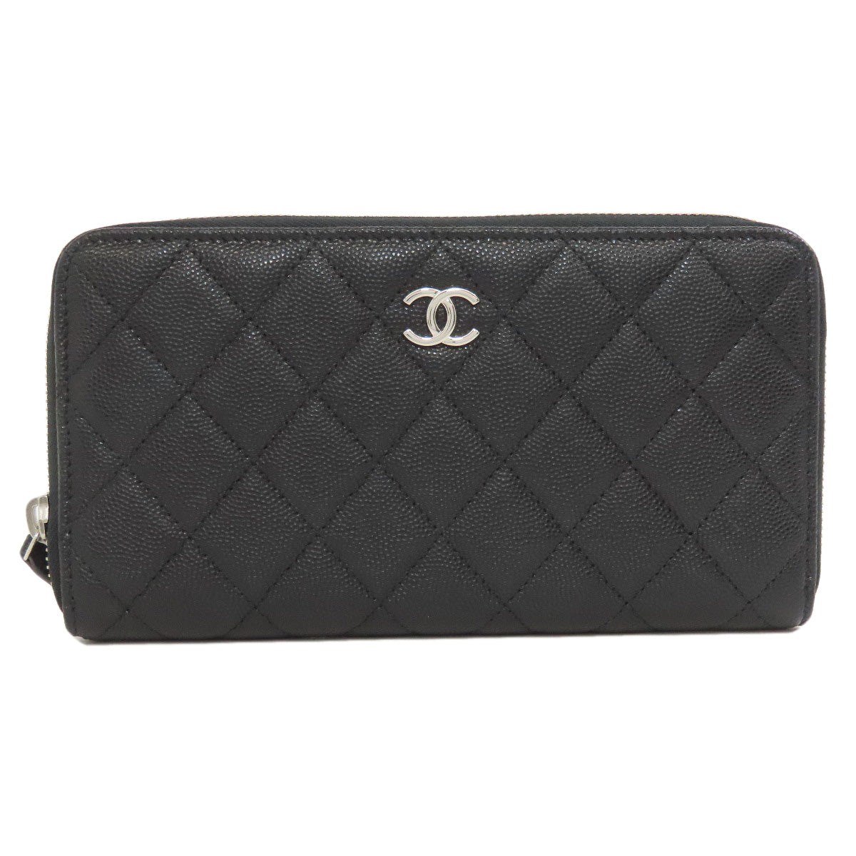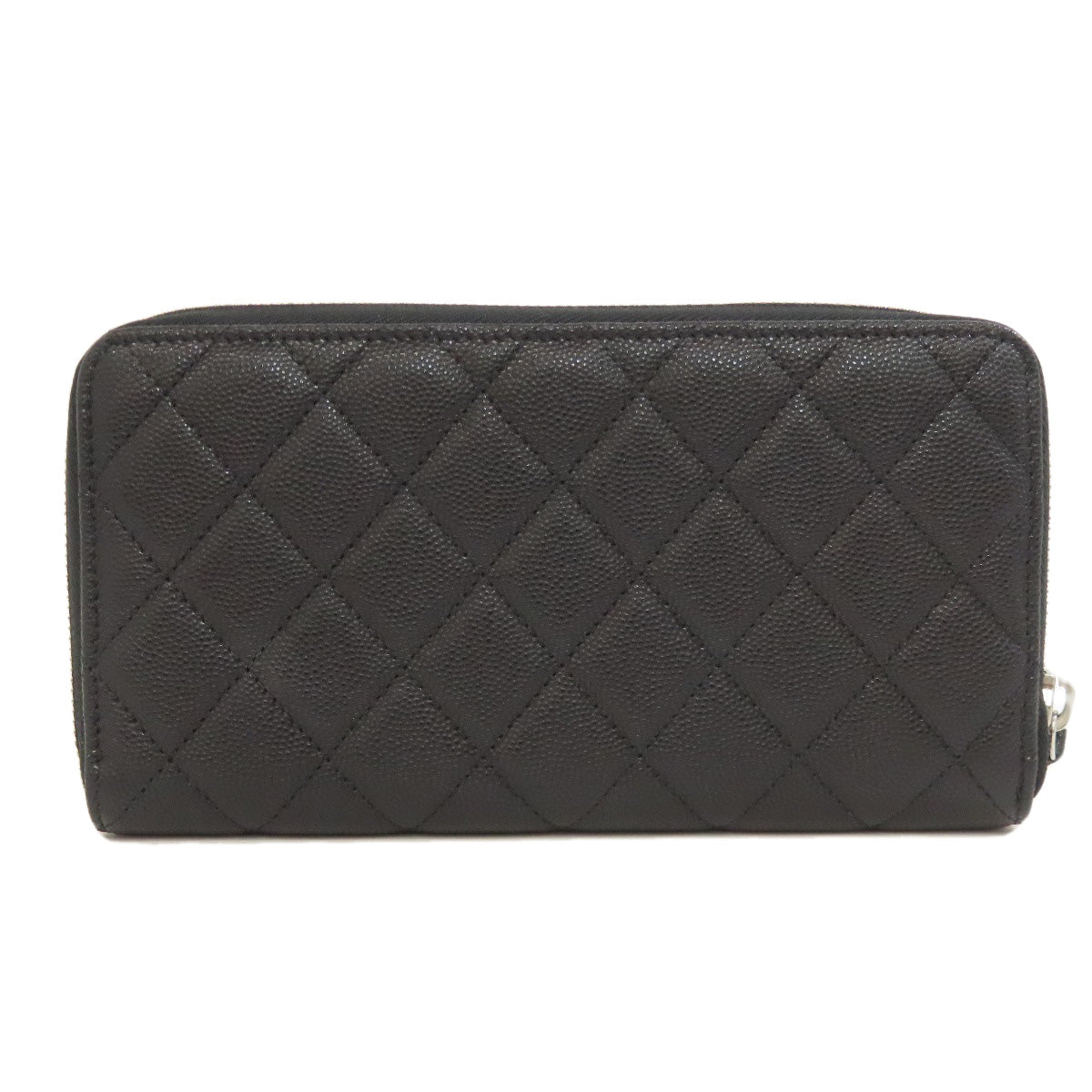 CHANEL Long Wallet Purse Grained Calfskin Skin black Matelasse SilverMetal Women Used Authentic