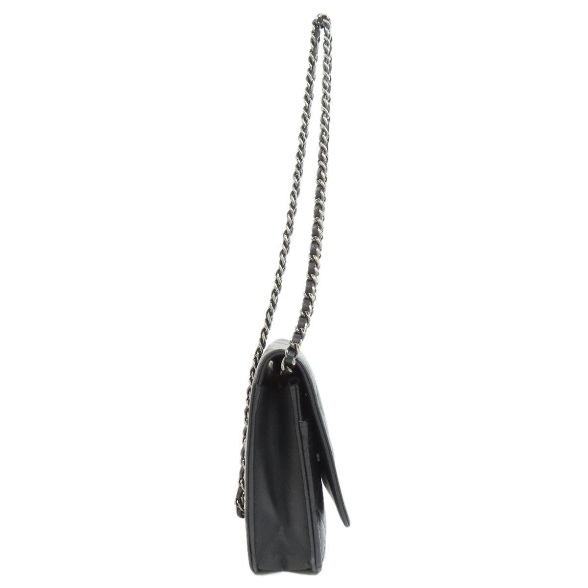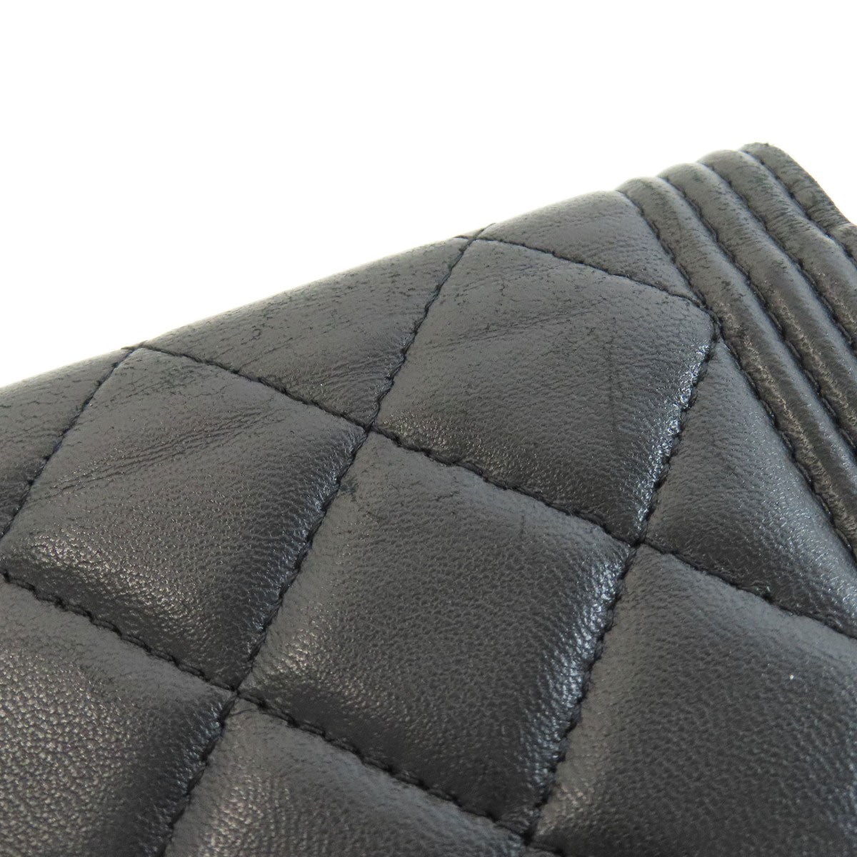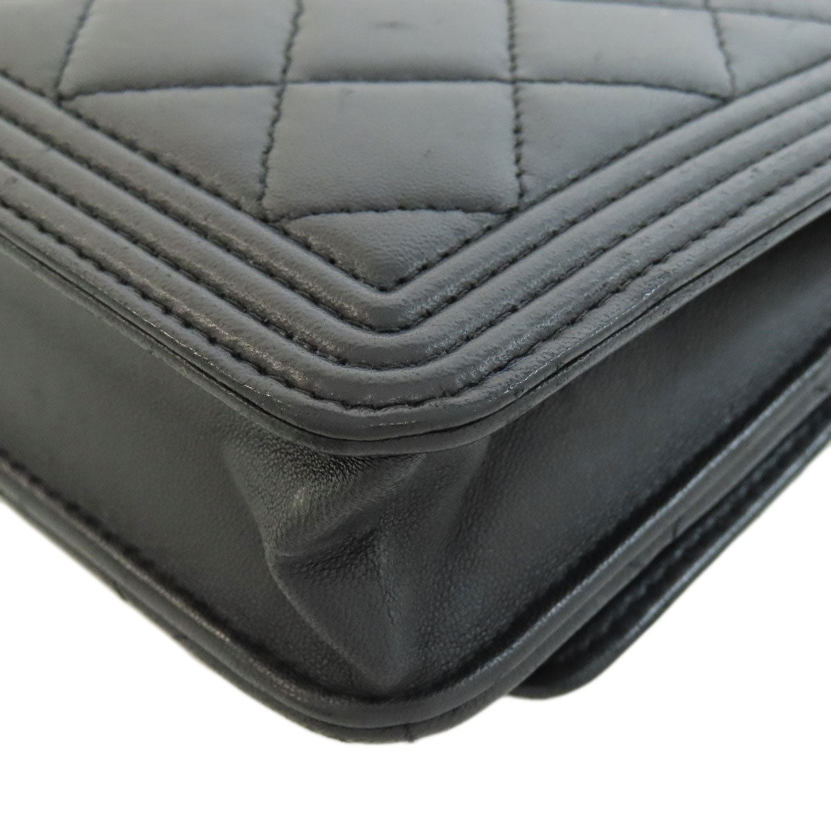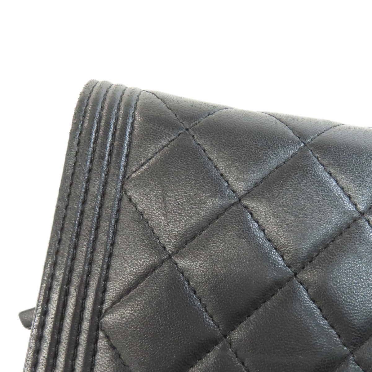 CHANEL Long Wallet Purse lambskin black Chain Wallet Boy Chanel SilverMetal