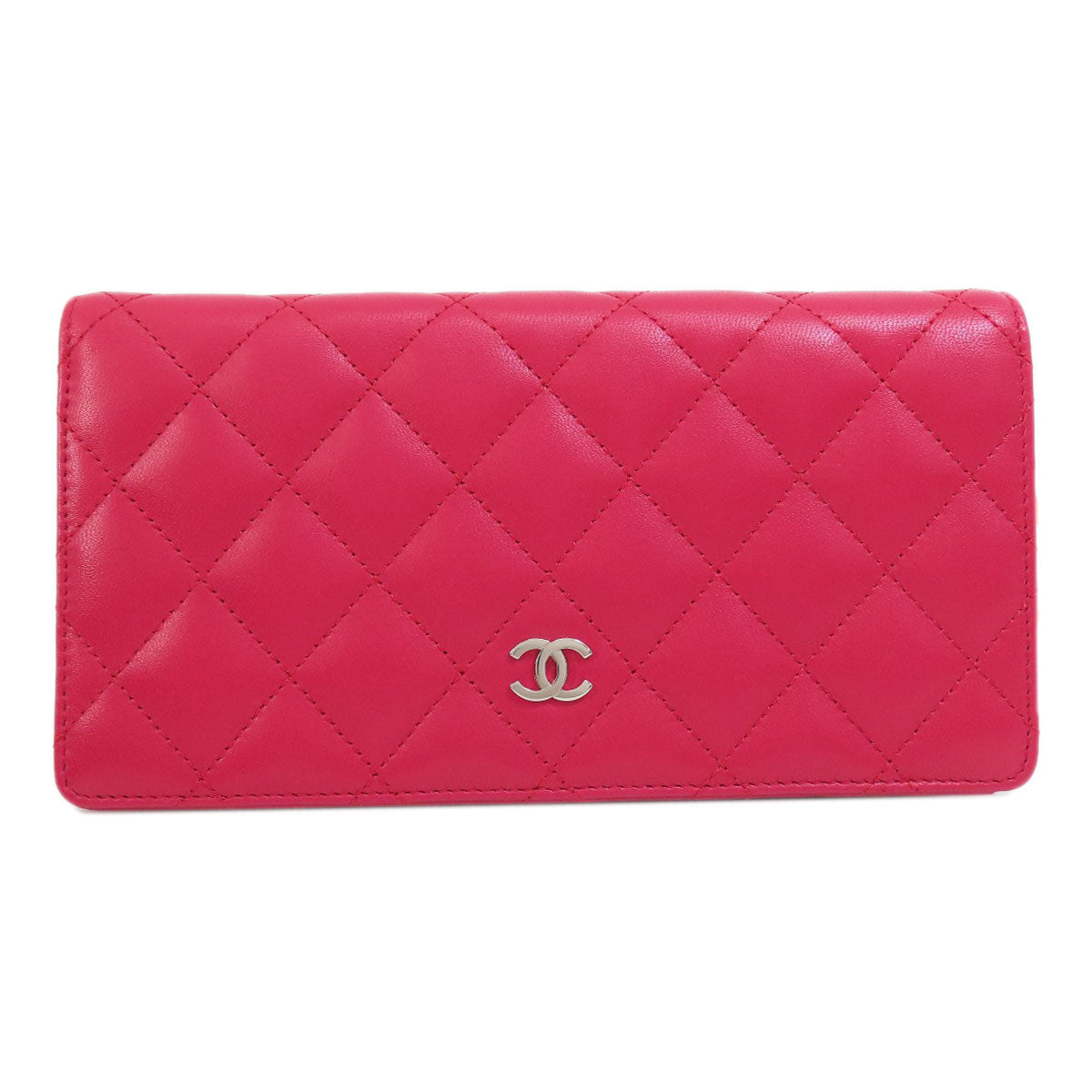CHANEL Long Wallet Purse lambskin Red Matelasse SilverMetal