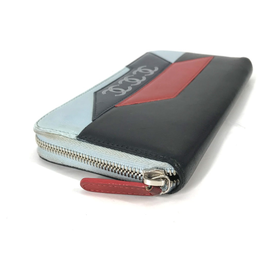 CHANEL Long Wallet Purse leather black airline triple coco Long wallet Women Used Authentic