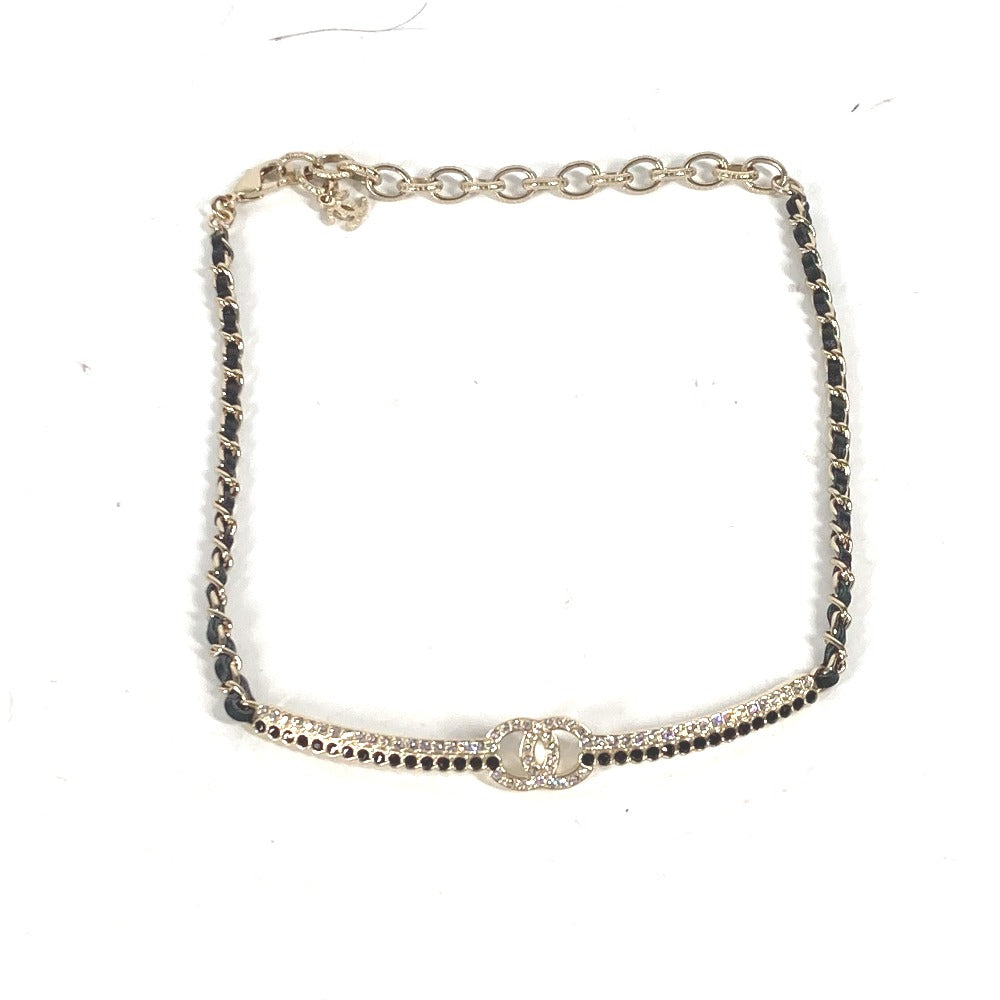 CHANEL Necklace AB9152 metal black A22 CC COCO Mark Rhinestone Choker Women Used Authentic