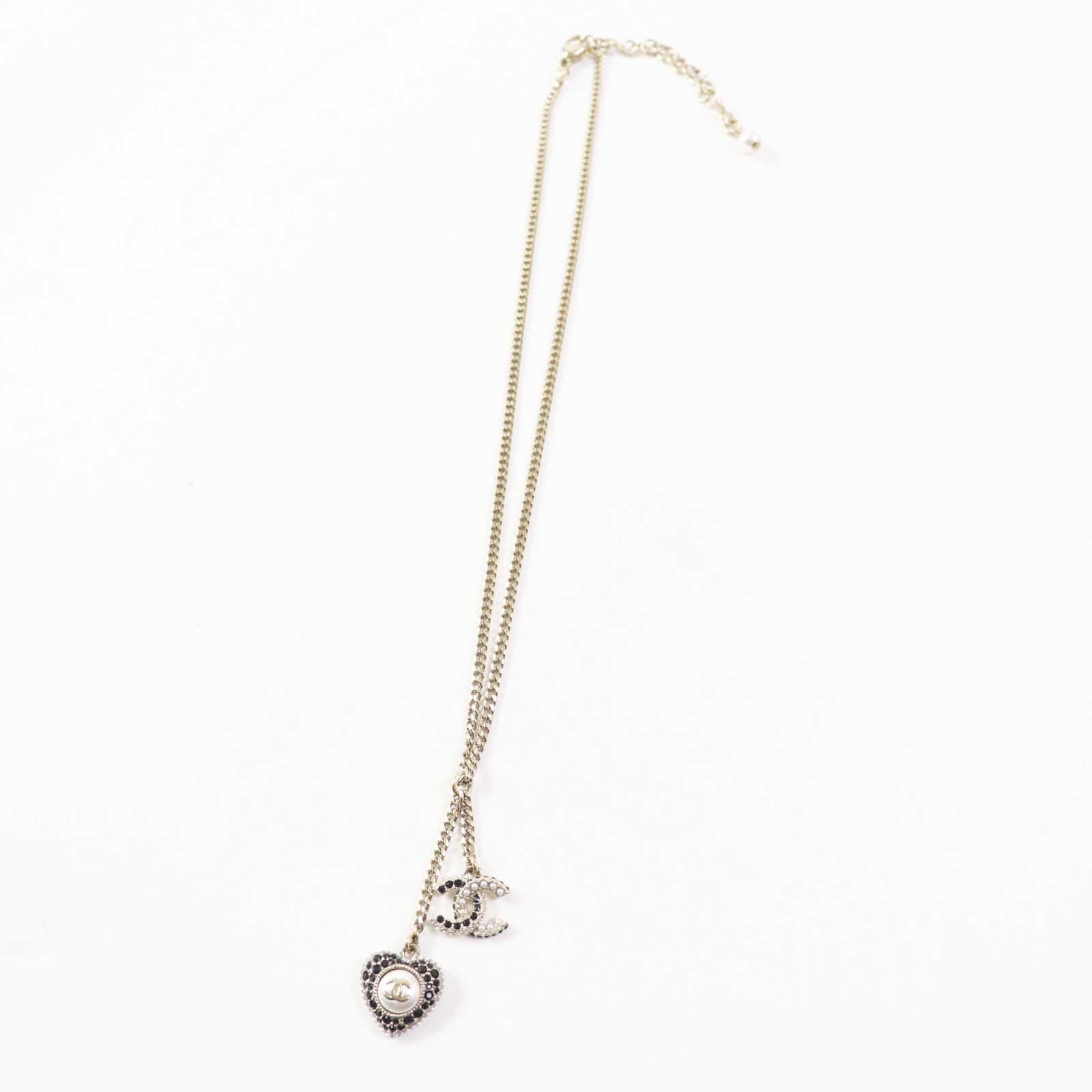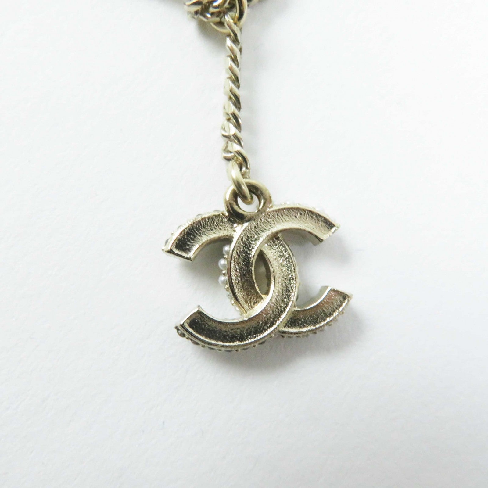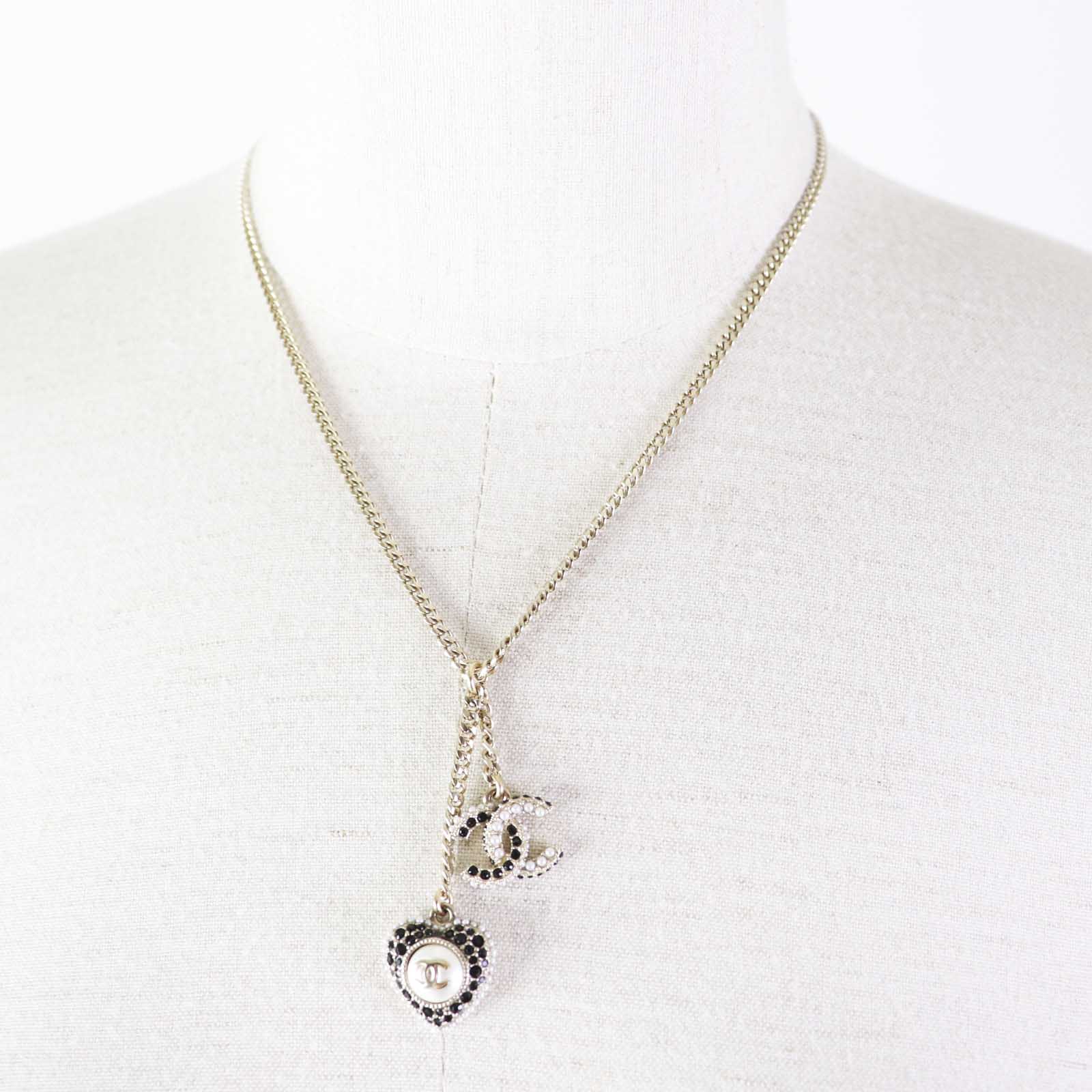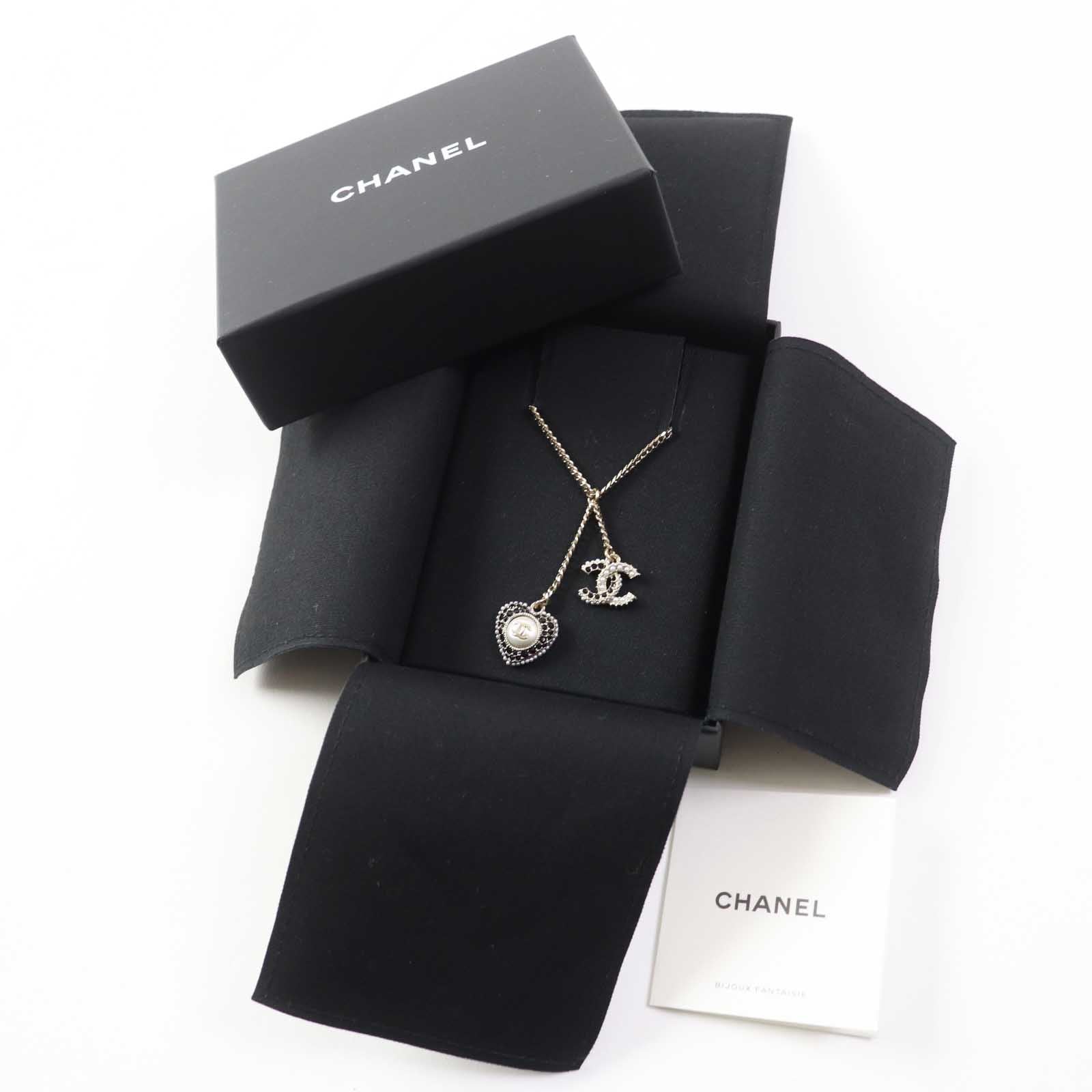 CHANEL Necklace C22B Metal, Rhinestone, Faux Pearl Black gold COCO Mark Heart Women Used Authentic