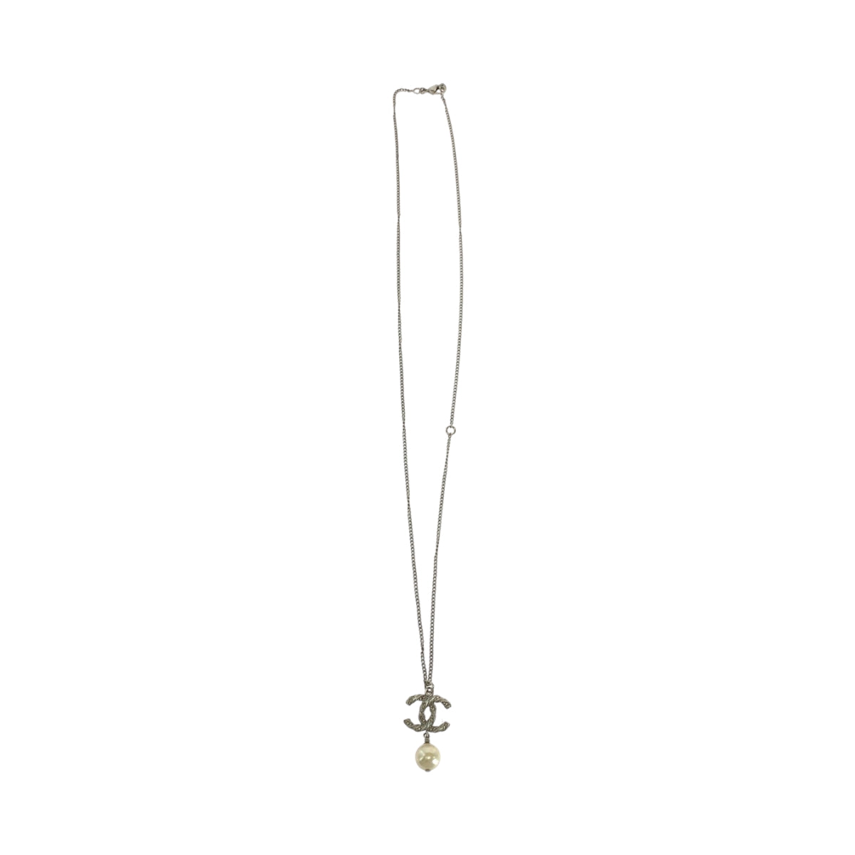 CHANEL Necklace plating Silver white Necklace COCO Mark Fake Pearl Women Used Authentic