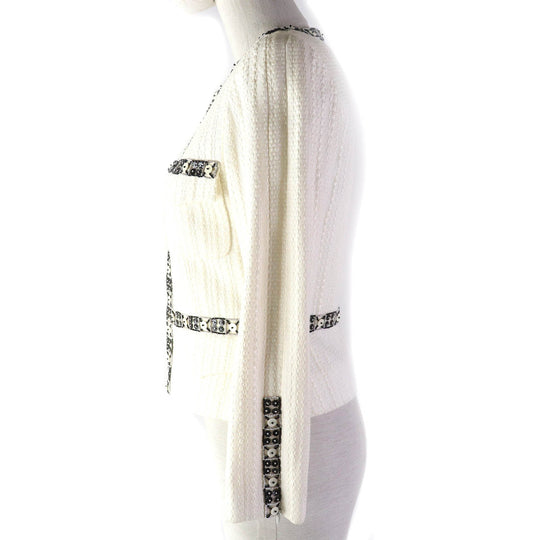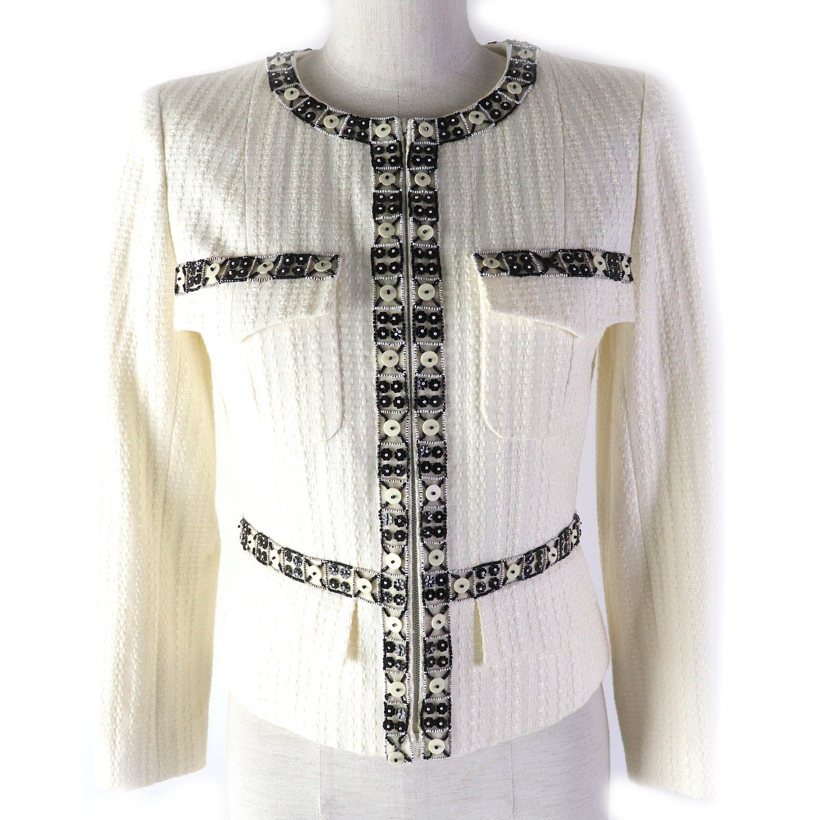 CHANEL No color jacket 03P P23760 Outer: 56% cotton, Outer: 44% linen, Lining: 95% silk, Lining: 5% elastane (polyurethane) Off-white black Women 34 Used Authentic