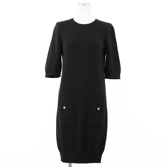 CHANEL one piece [Outer material] 100% cashmere black Women 36 Used Authentic