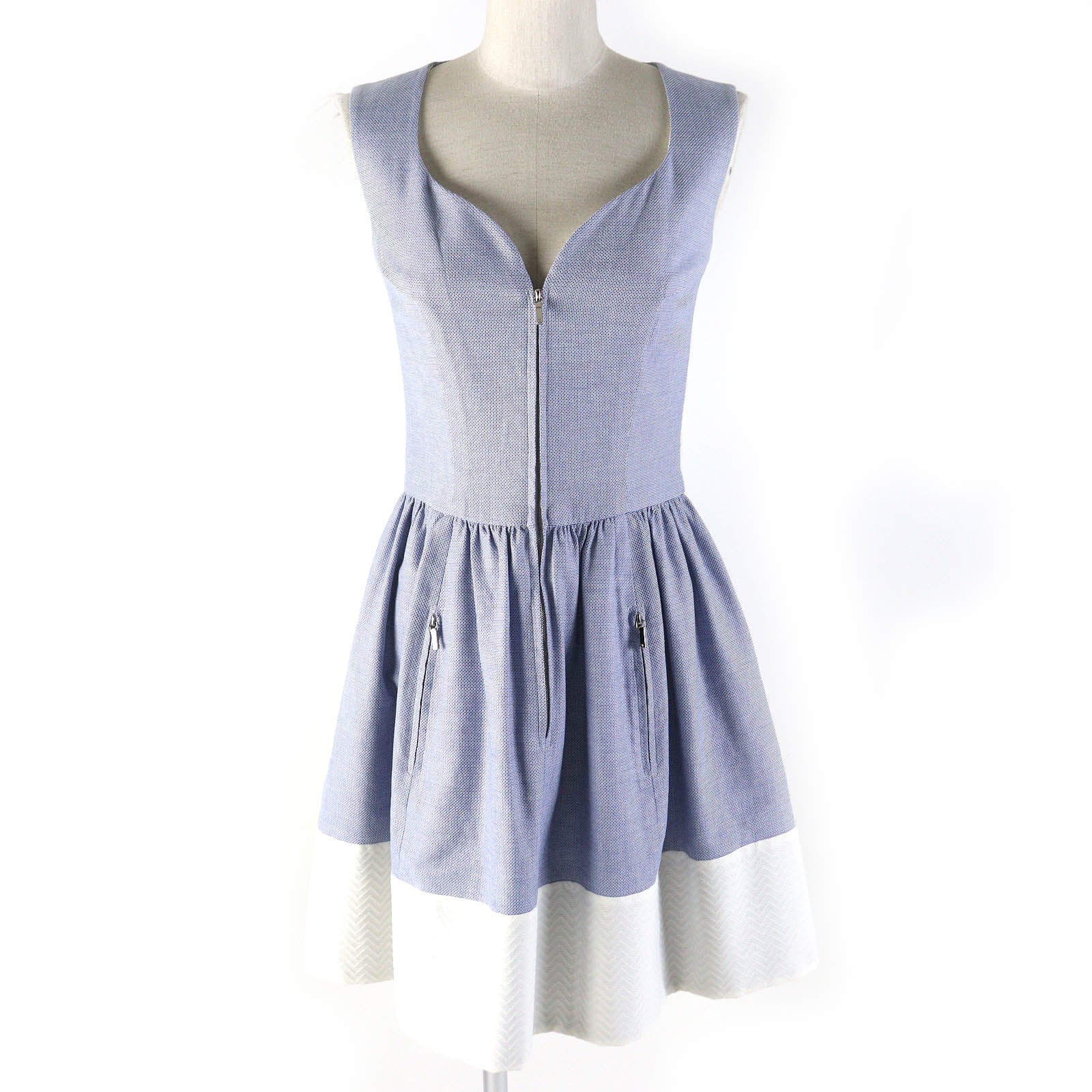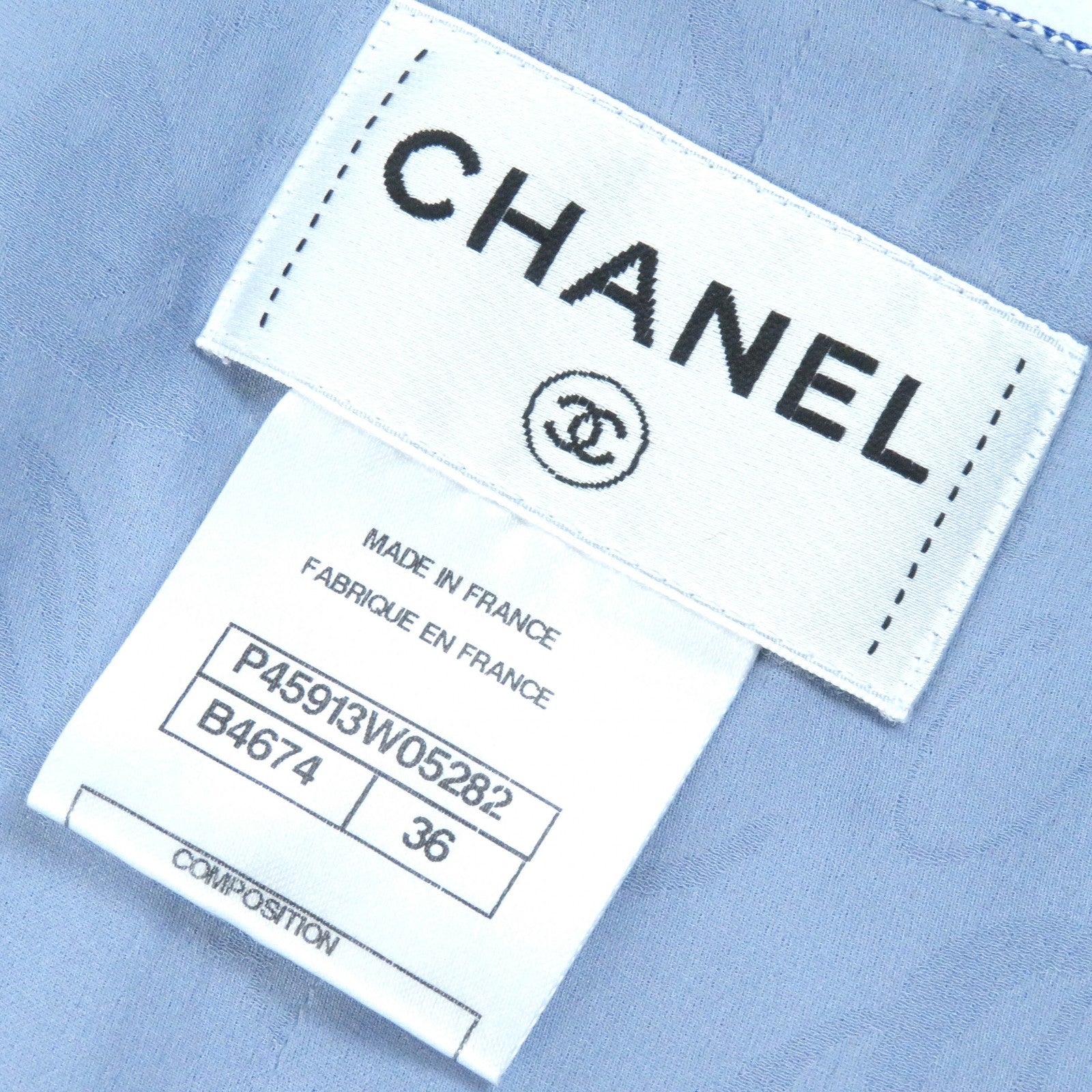 CHANEL one piece P45913 Outer: 100% cotton, Lining: 100% silk, Part: 86% polyamide, Part: 14% silk Blue white Women 36 Used Authentic