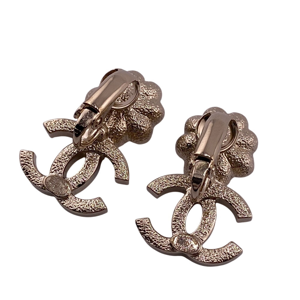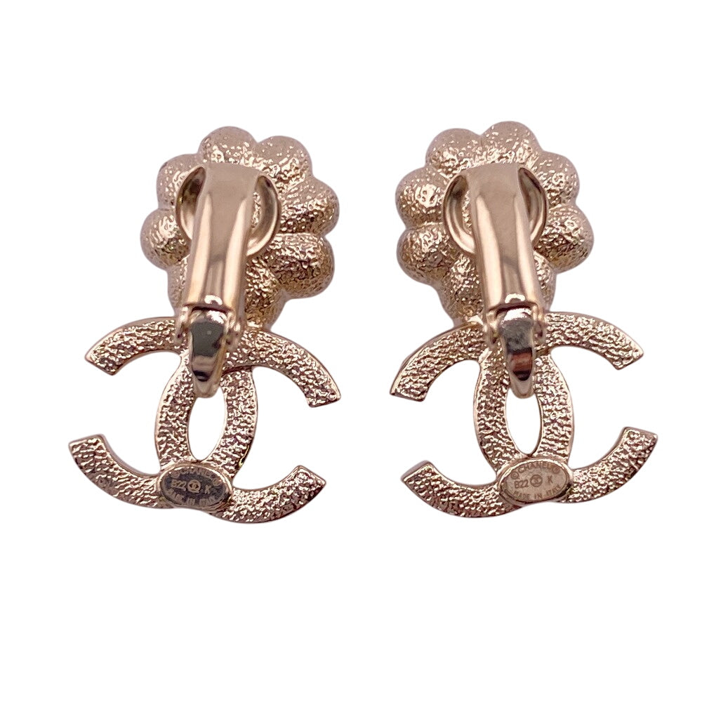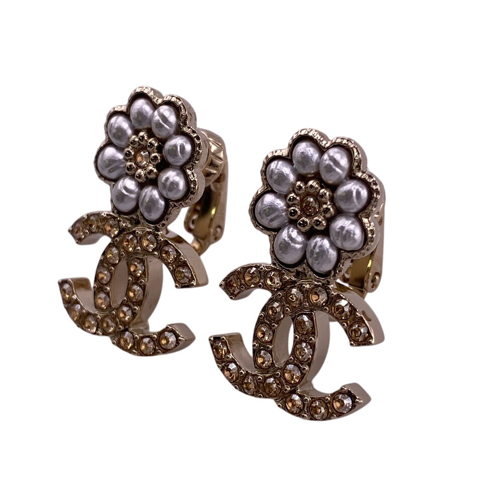 CHANEL Pierce B22K Rhinestones , Faux Pearls gold COCO Mark Women Used Authentic