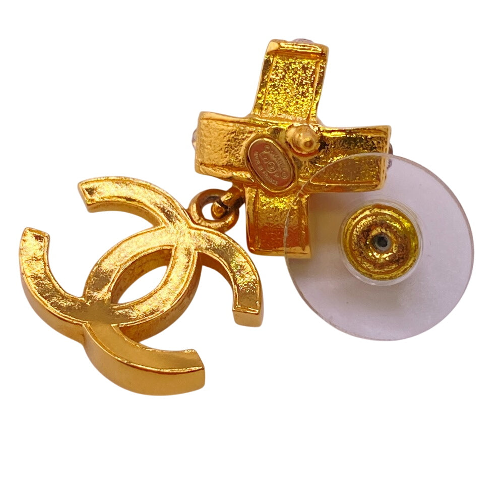 CHANEL Pierce Gold Plated gold L23P COCO Mark rhinestone Women Used Authentic
