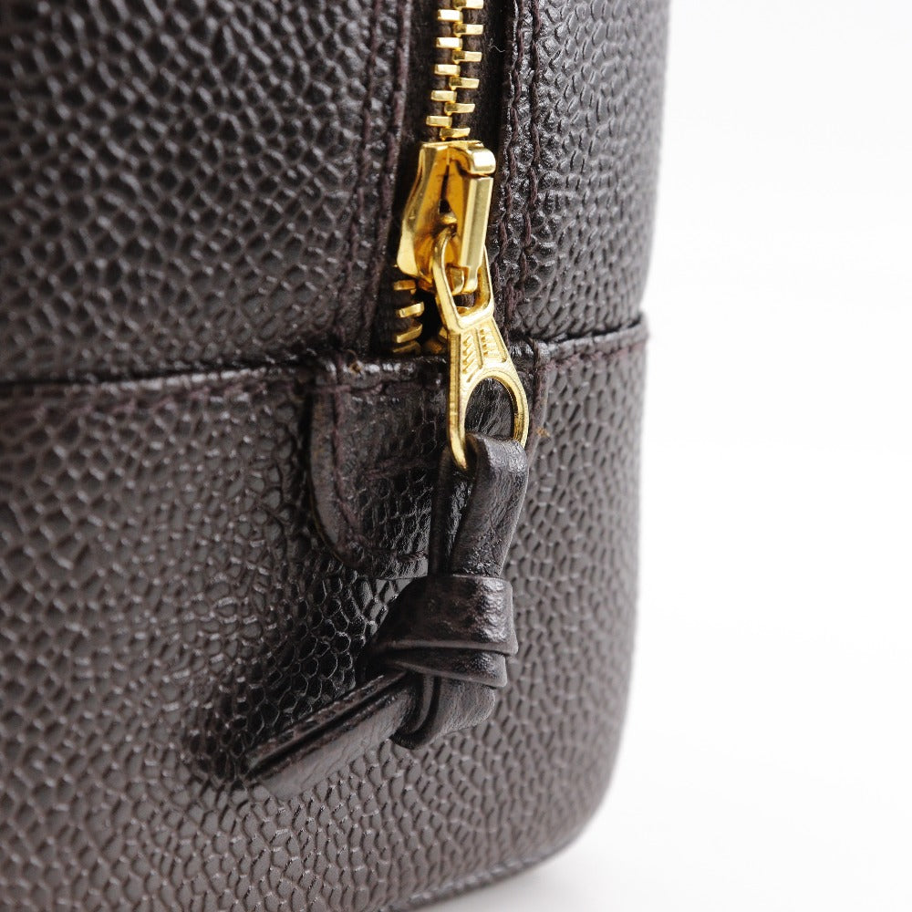 CHANEL Pouch A01996 Caviar skin Brown Cosmetic porch COCO Mark Women Used Authentic