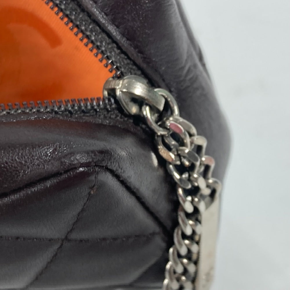 CHANEL Pouch leather Brown Makeup pouch Cosmetics Pouch Cambon line Women Used Authentic