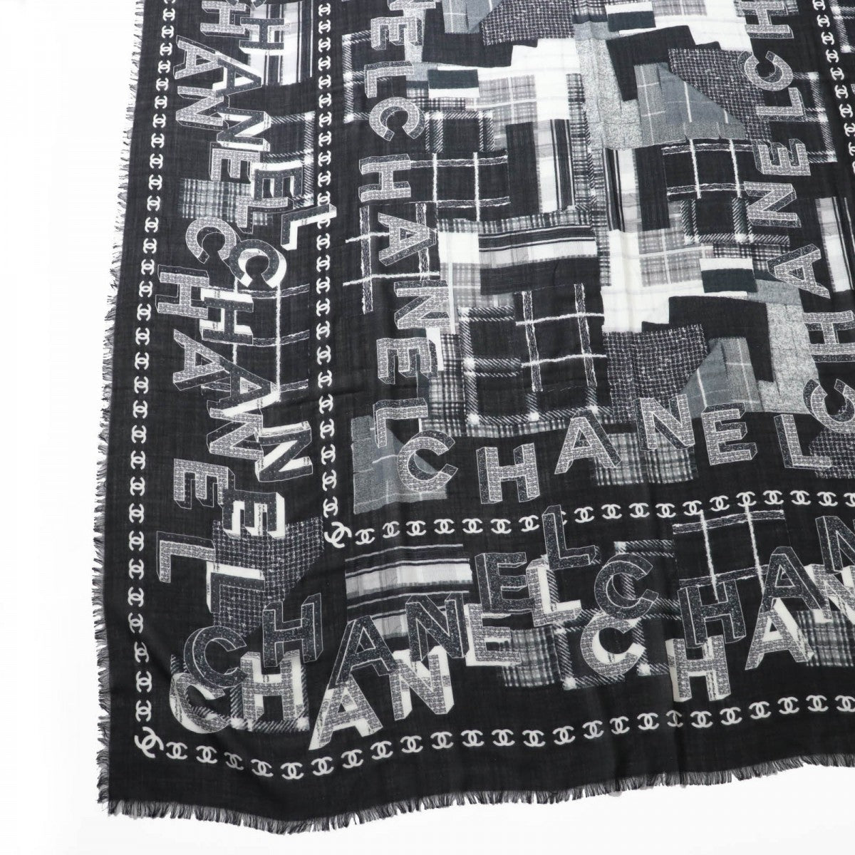 CHANEL scarf 21B Main: 70% wool, Main: 30% cashmere Black White Women Used Authentic