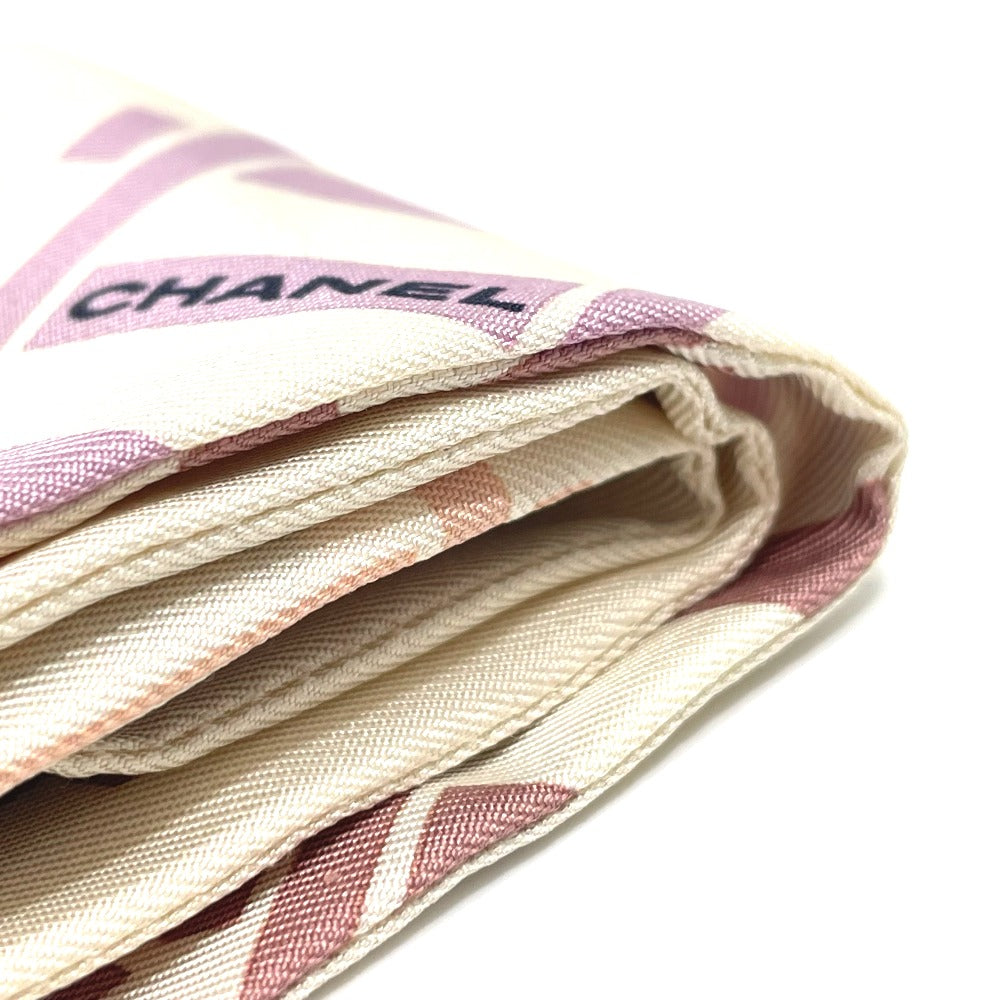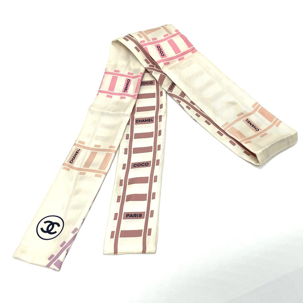 CHANEL scarf silk white CCCOCO Mark Track motif Women Used Authentic