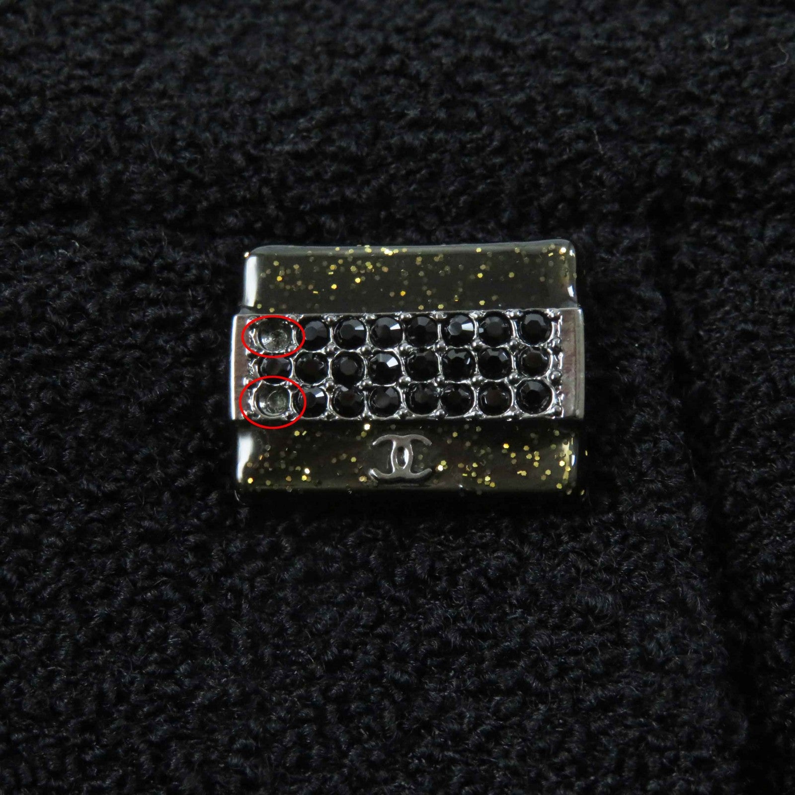 Two rhinestones have come off from the COCO Mark plate on the skirt. (See image)