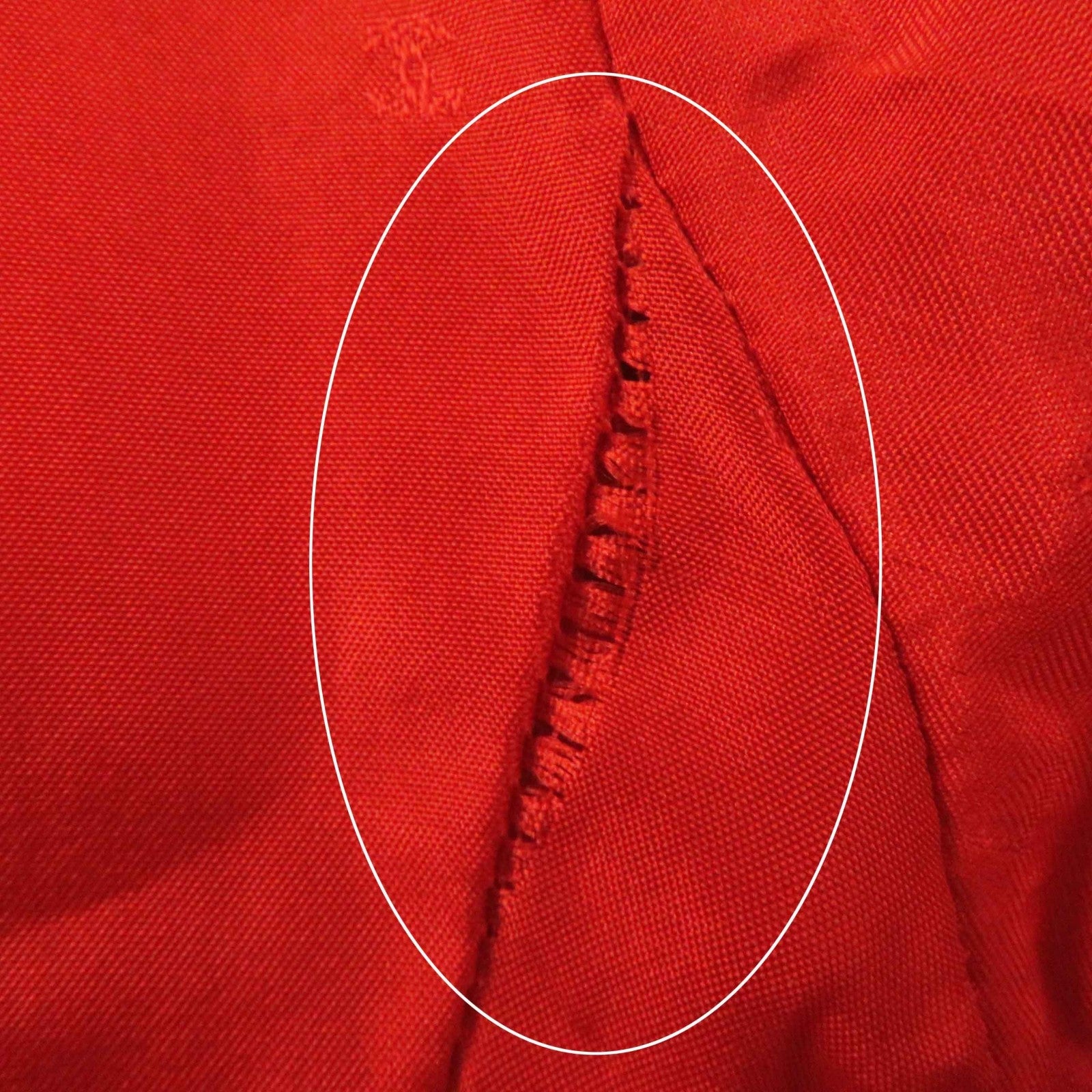 There is a "StainsStain" on the material tag. (See image) There is a spread of fabric under the armpits of the jacket and on the lining of the skirt. (See image)