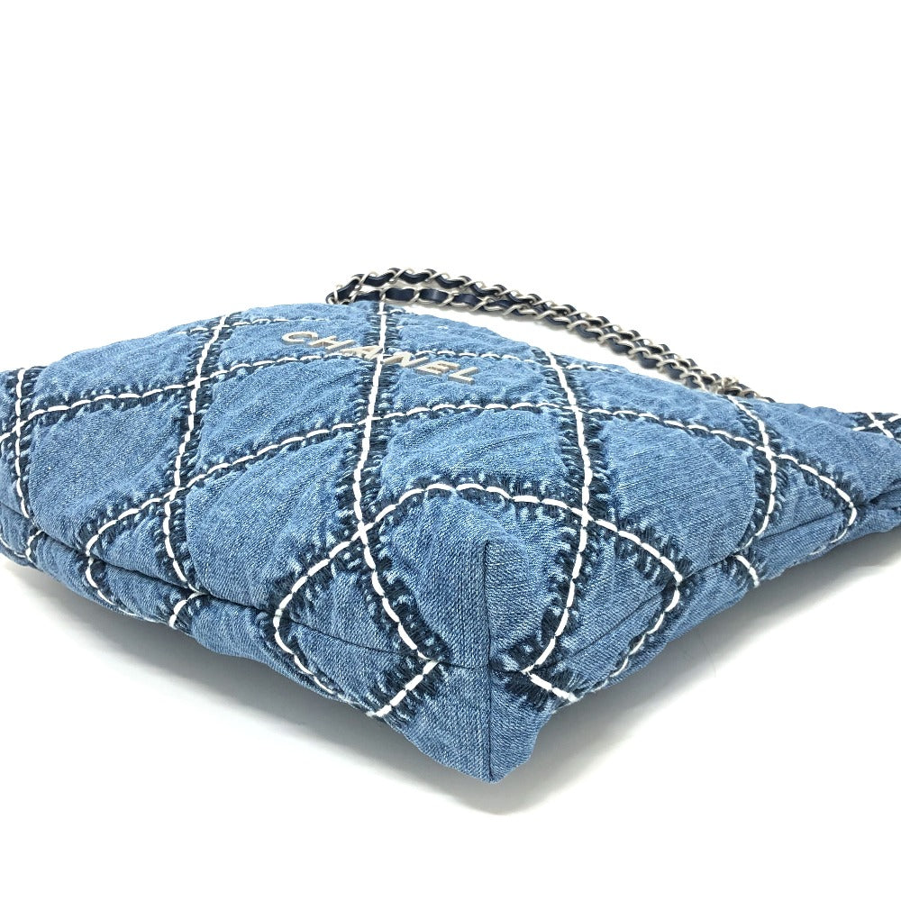 CHANEL Shoulder Bag AS3260 denim blue Chanel 22 Matelasse with medal charm Women Used Authentic