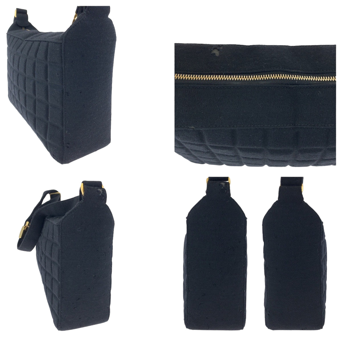 CHANEL Shoulder Bag canvas Black Gold Metal Shoulder Bag handbag Chocolate bar COCO Mark Women Used Authentic