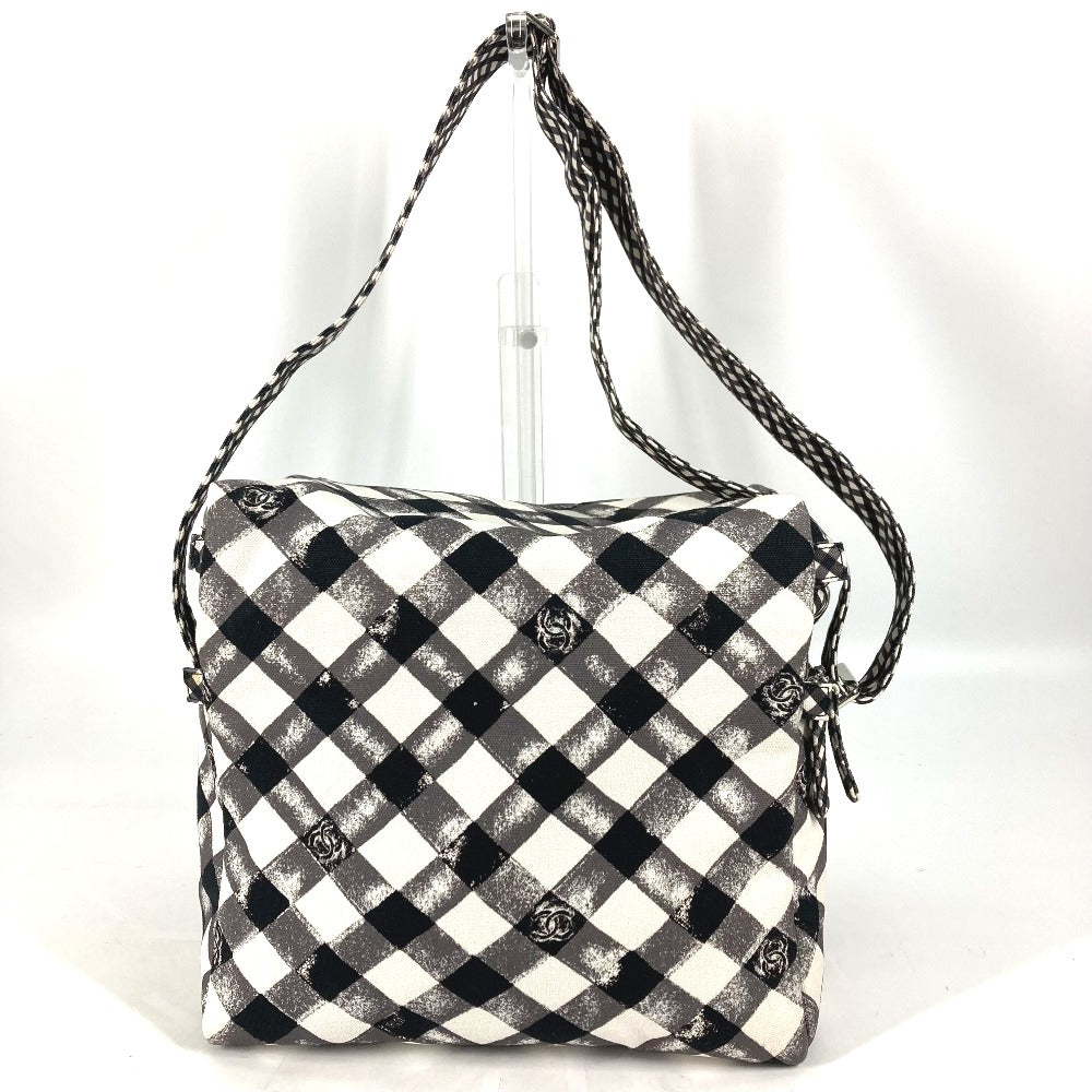 CHANEL Shoulder Bag canvas white Check CC COCO Mark Women Used Authentic