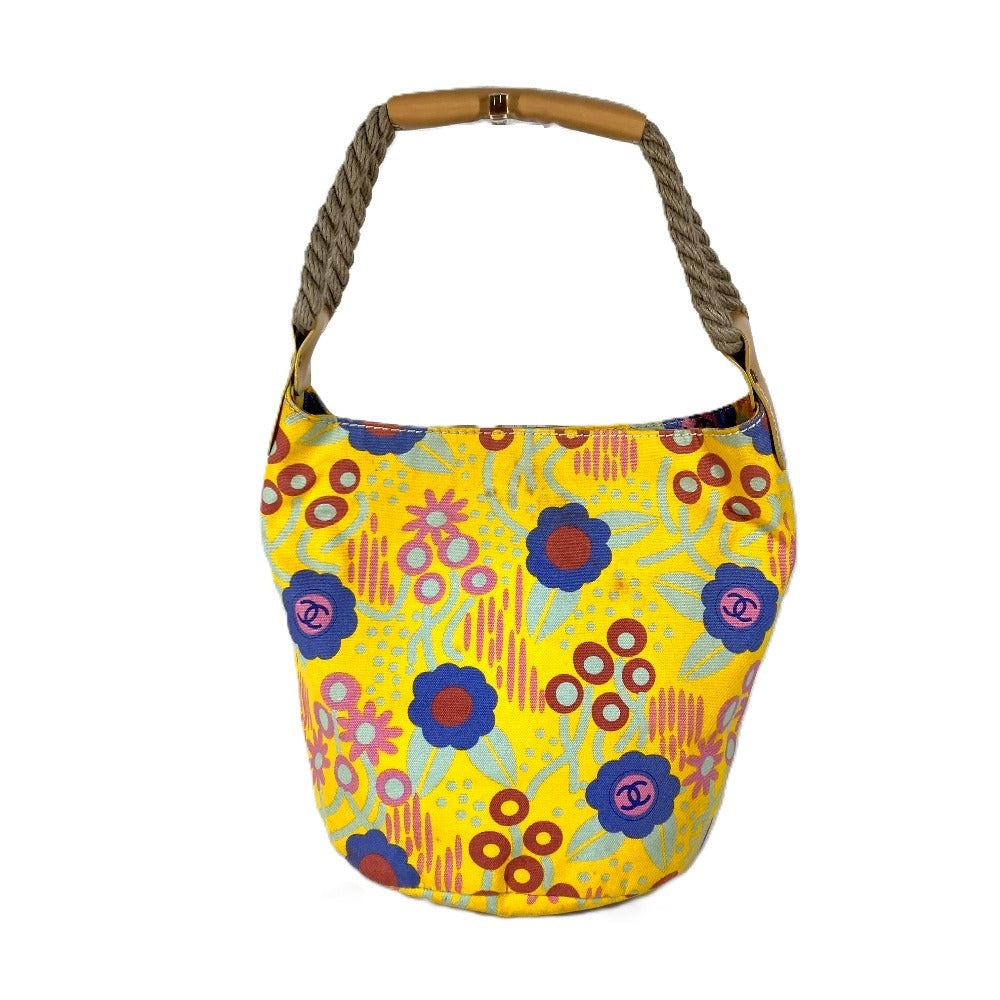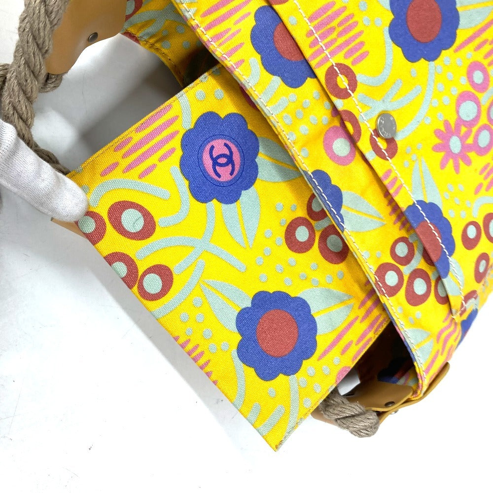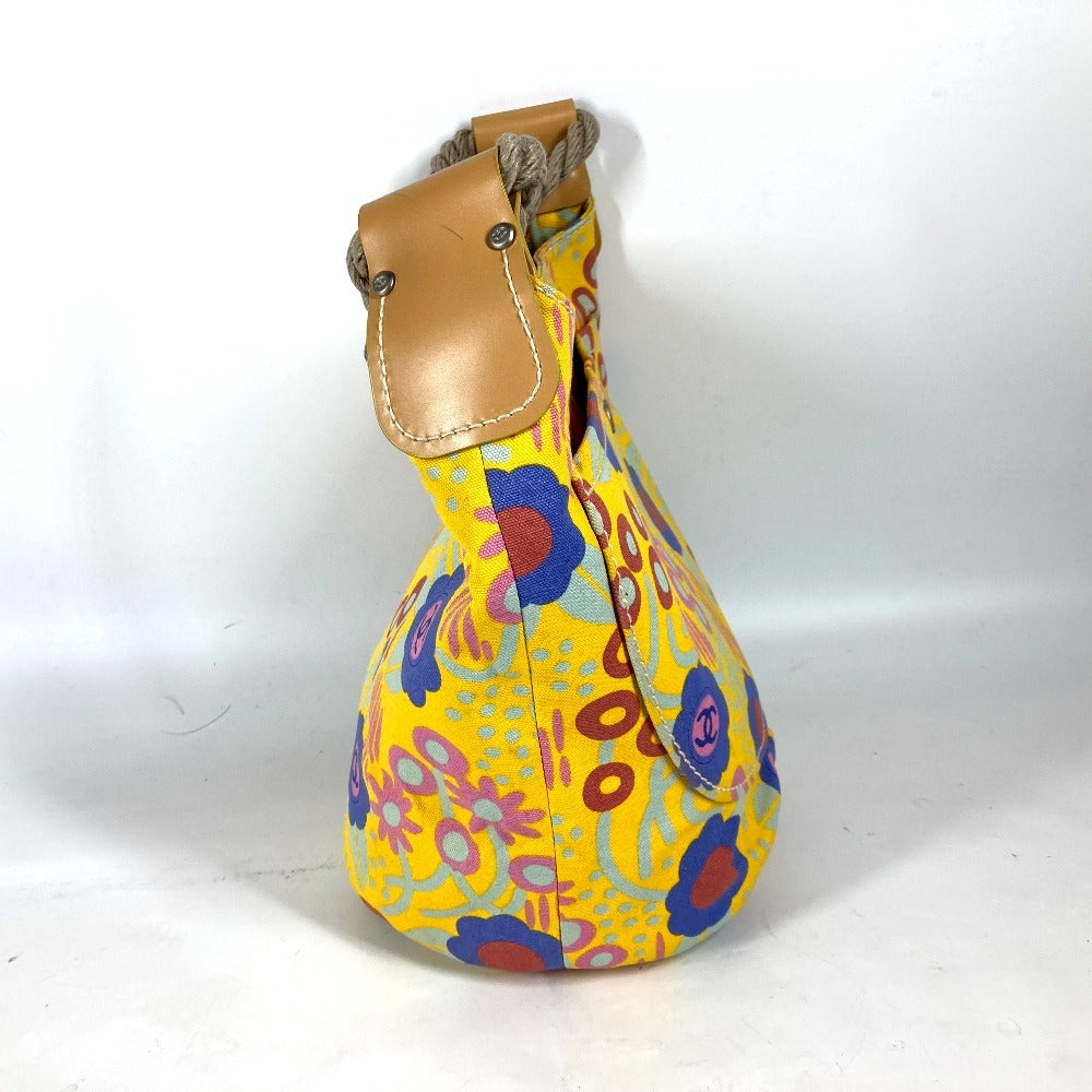 CHANEL Shoulder Bag canvas yellow High summer Flower Pattern Women Used Authentic