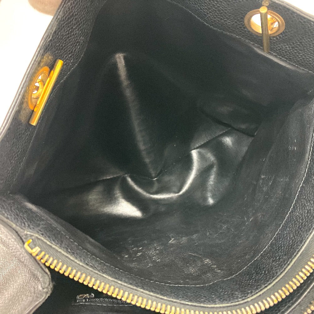 CHANEL Shoulder Bag Caviar skin black CC COCO Mark Matrasse Women Used Authentic