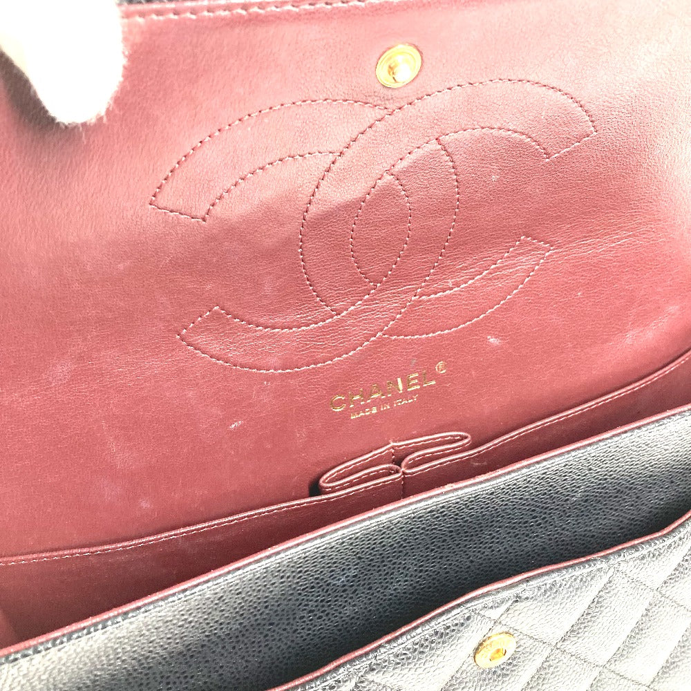CHANEL Shoulder Bag Caviar skin black Chain bag Matelasse 30 Quilting Women Used Authentic