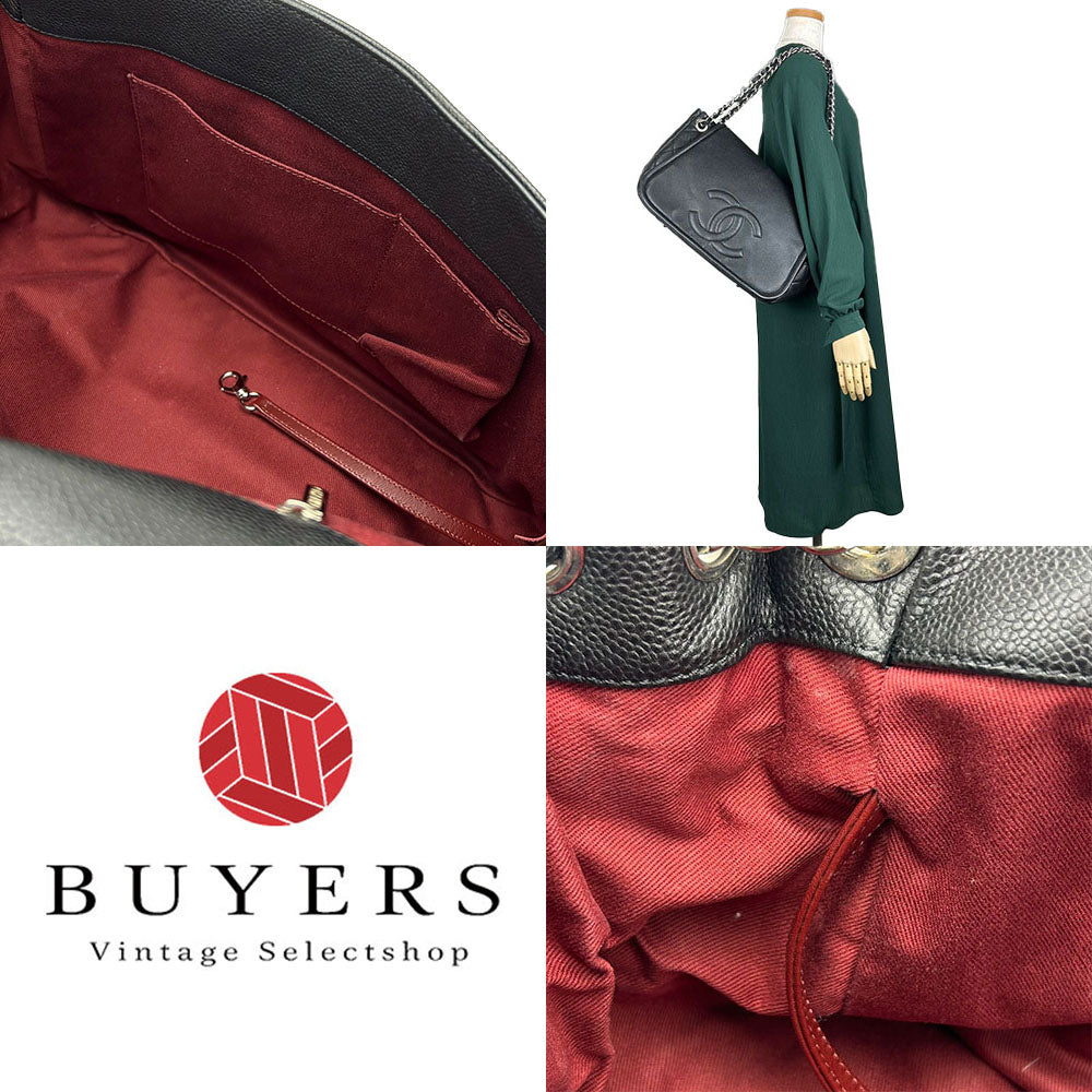 CHANEL Shoulder Bag Caviar skin black ChainShoulder Women Used Authentic