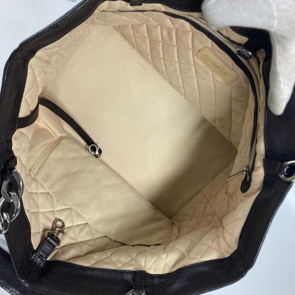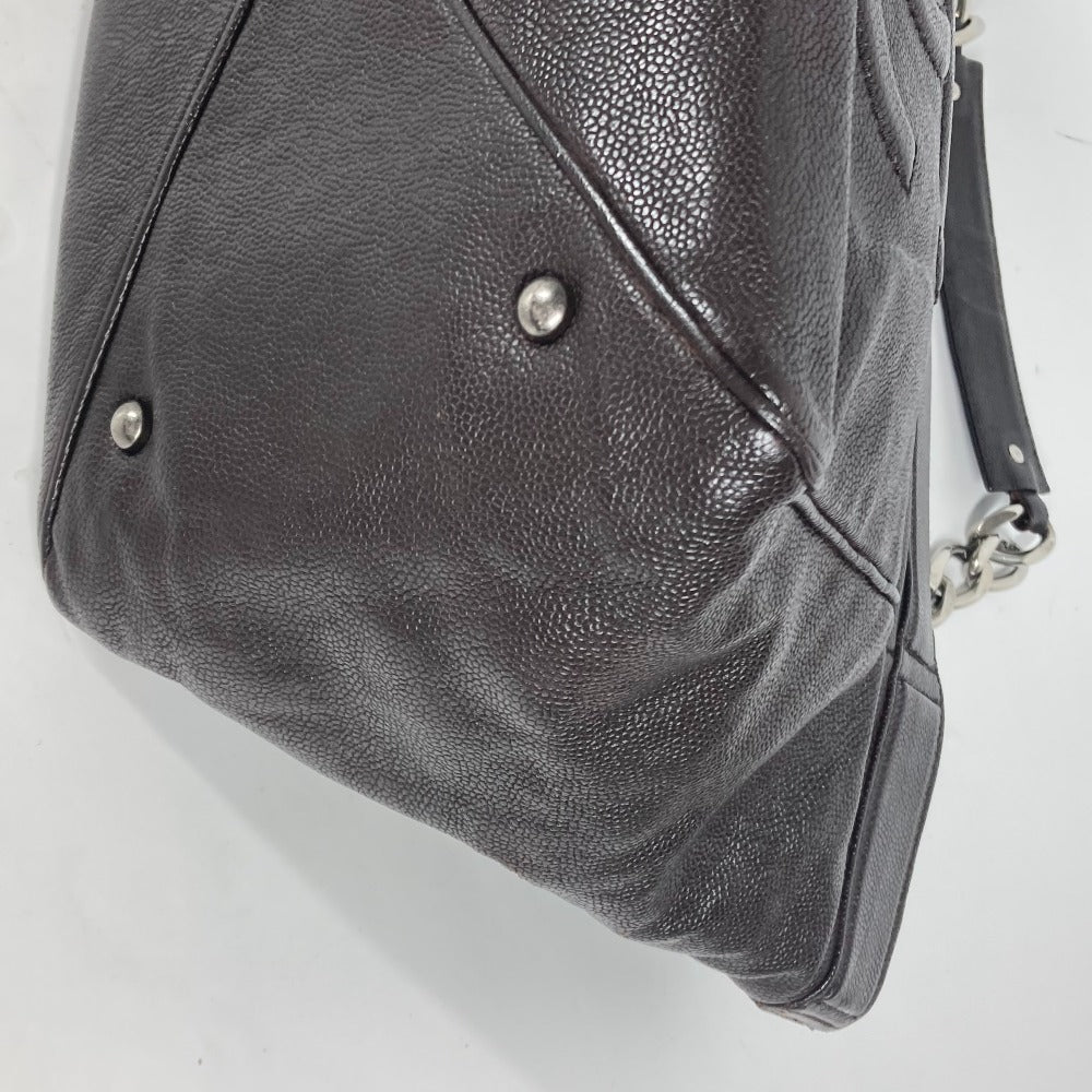 CHANEL Shoulder Bag Caviar skin Brown WChain CC COCO Mark DecaCoco Women Used Authentic