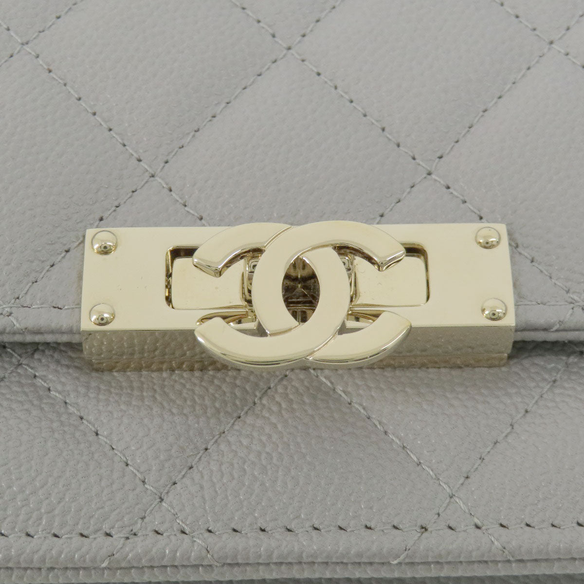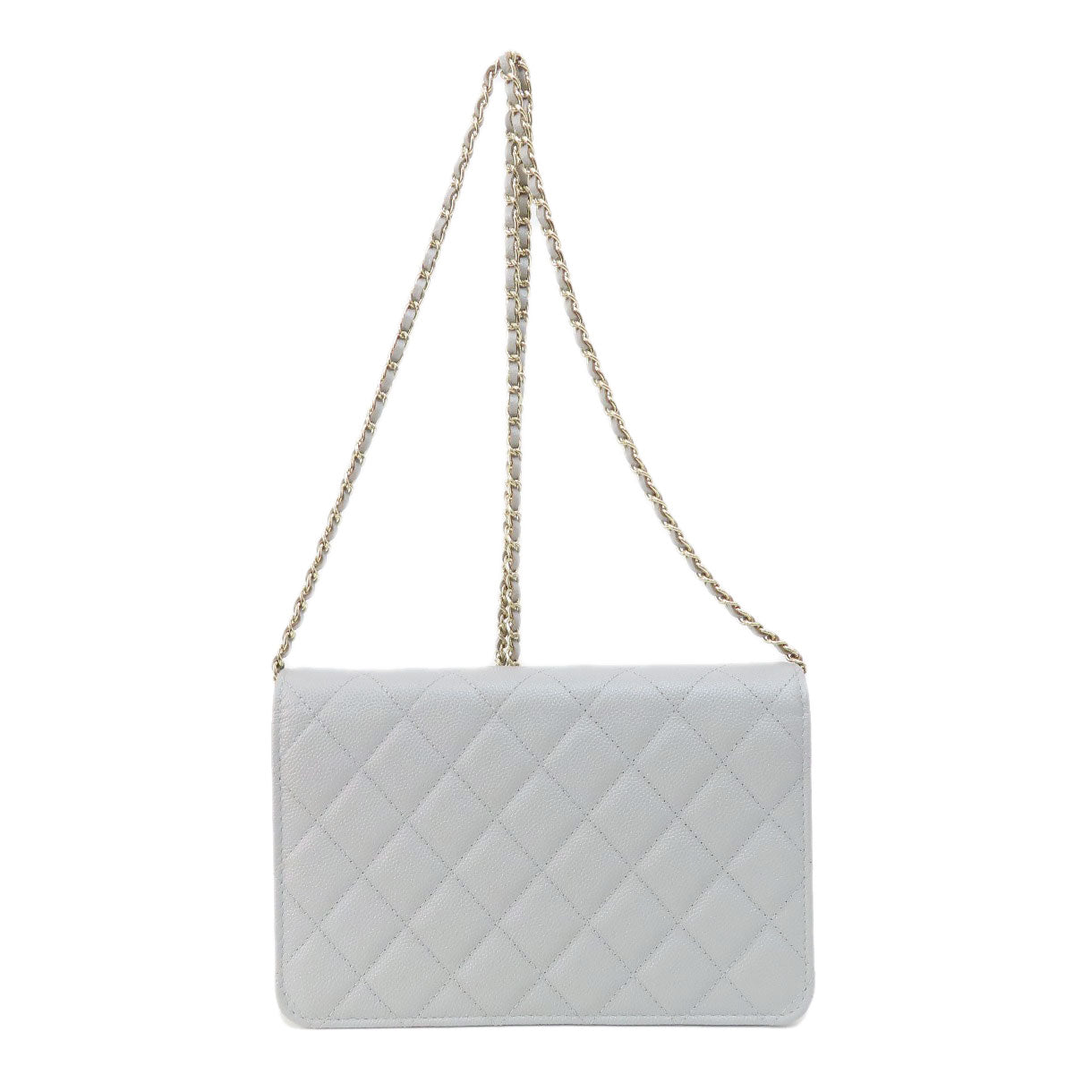 CHANEL Shoulder Bag Caviar skin gray Chain Wallet Matelasse COCO Mark Gold Metal