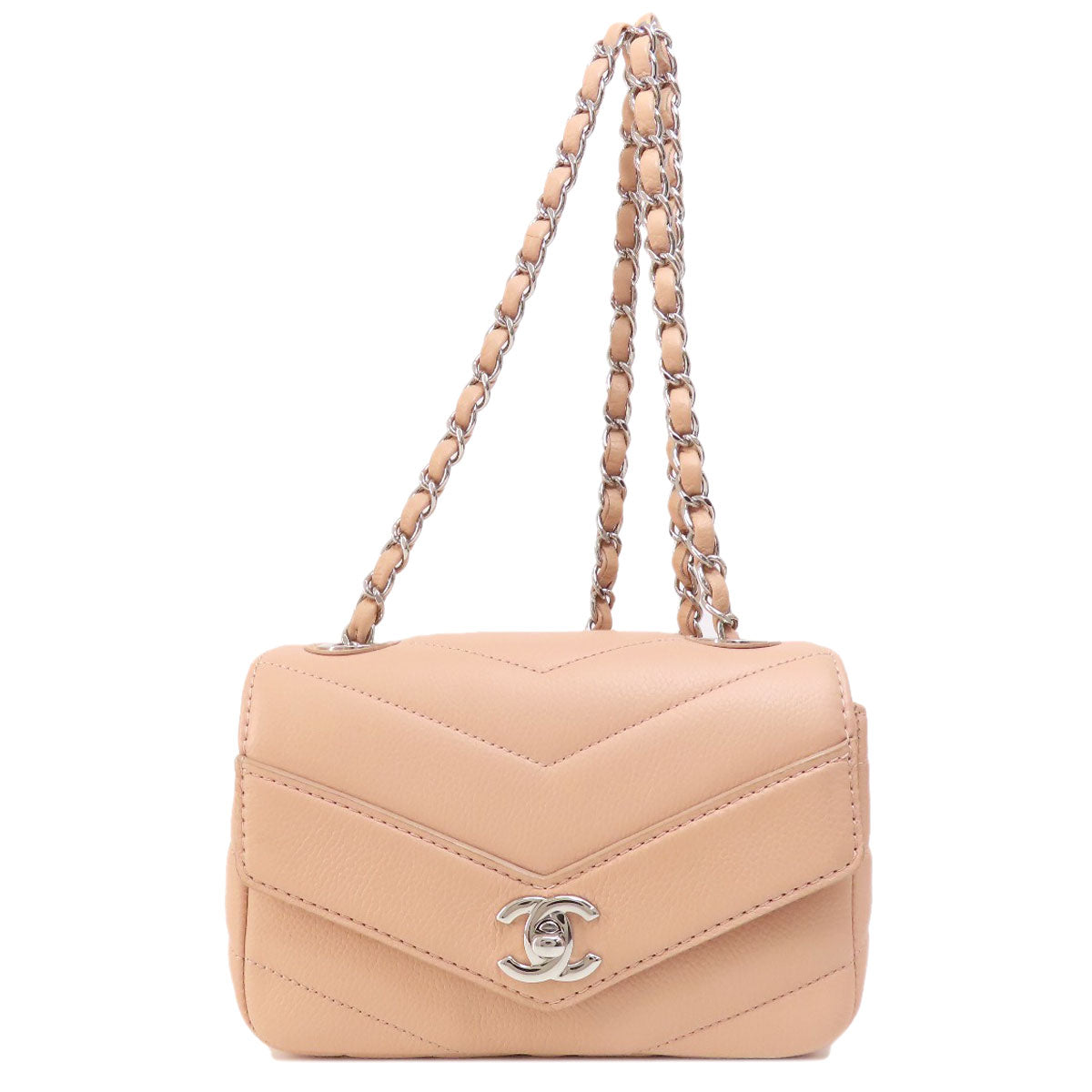 CHANEL Shoulder Bag Grained Calfskin Skin pink ChainShoulder Matelasse SilverMetal