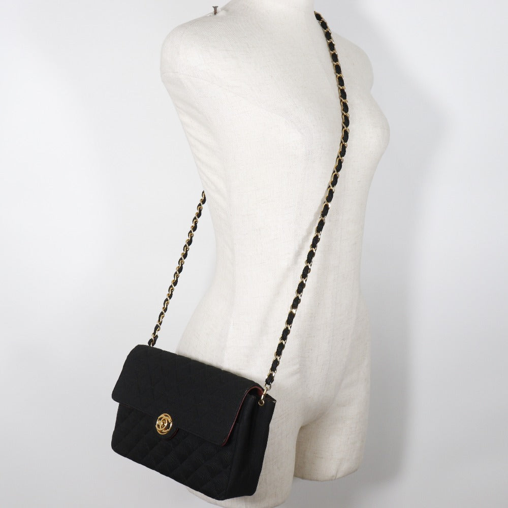 CHANEL Shoulder Bag cotton black ChainShoulder Women Used Authentic