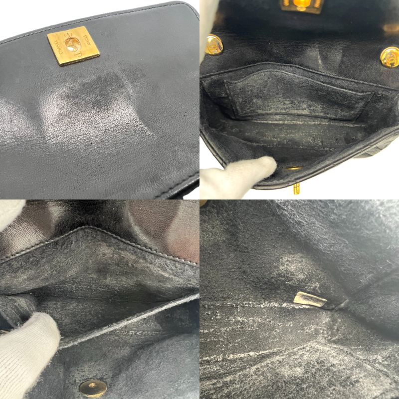 CHANEL Shoulder Bag lambskin black Chain Gold Metal Flap Turnlock Mini Matrasse Women Used Authentic