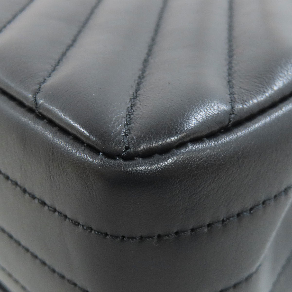 CHANEL Shoulder Bag lambskin black ChainShoulder Vstitch Gold Metal Women Used Authentic