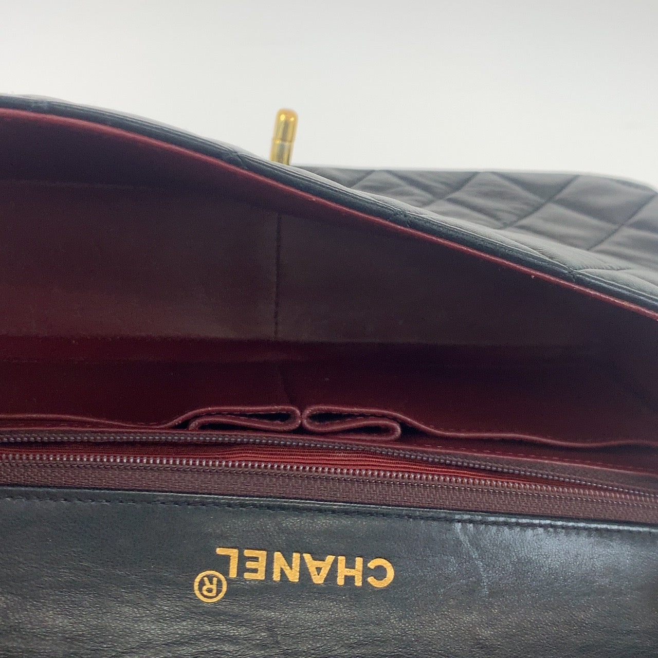 CHANEL Shoulder Bag lambskin Black GoldMetal Crossbody ChainShoulder Bag Pochette Matrasse COCO Mark Turnlock Single Flap Women Used Authentic