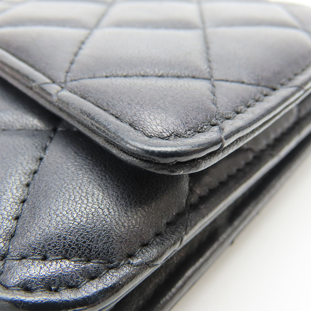 CHANEL Shoulder Bag lambskin black Matrasse Chain wallet Women Used Authentic