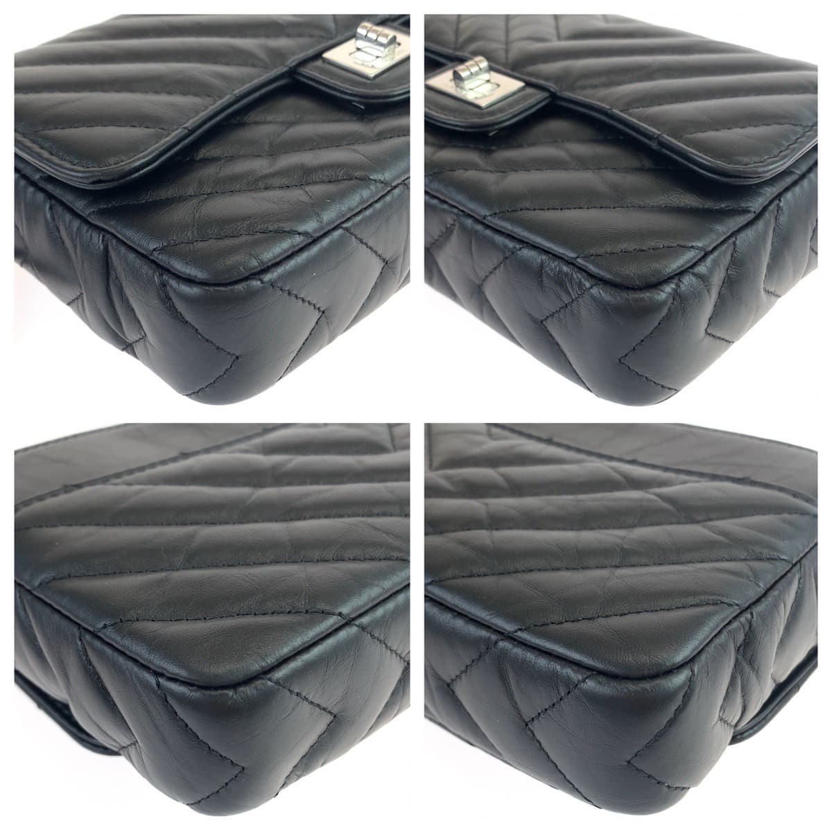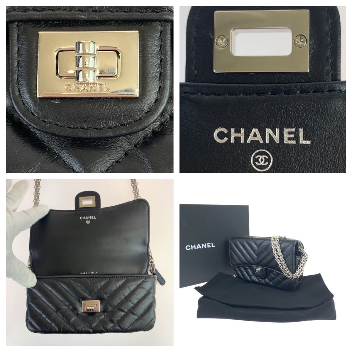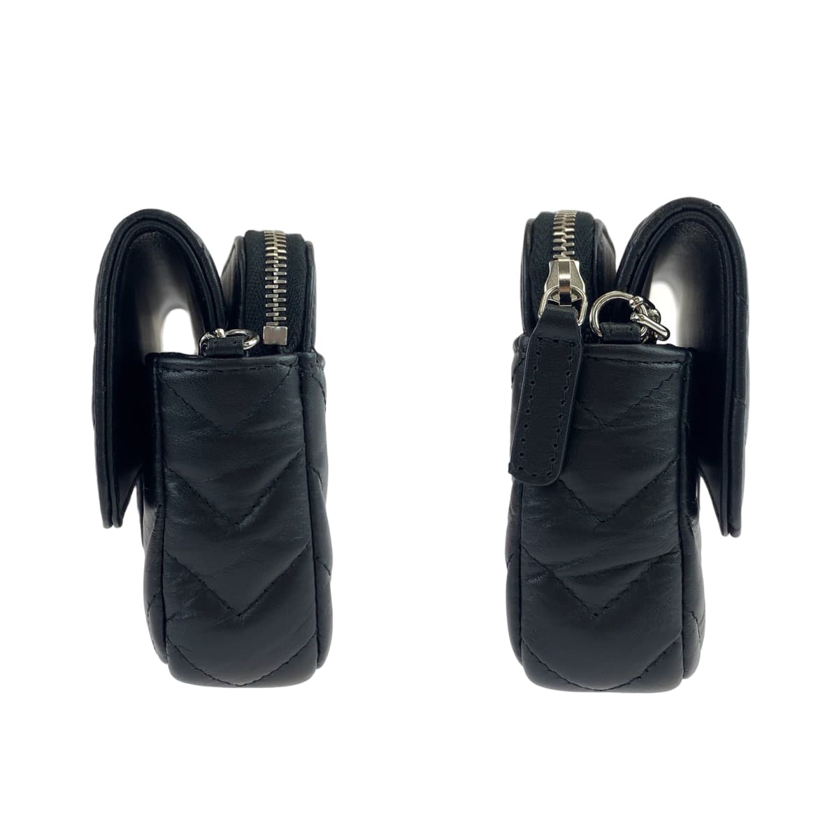 CHANEL Shoulder Bag lambskin Black SilverMetal Shoulder Bag Crossbody Chevron Vstitch Turn lock Women Used Authentic