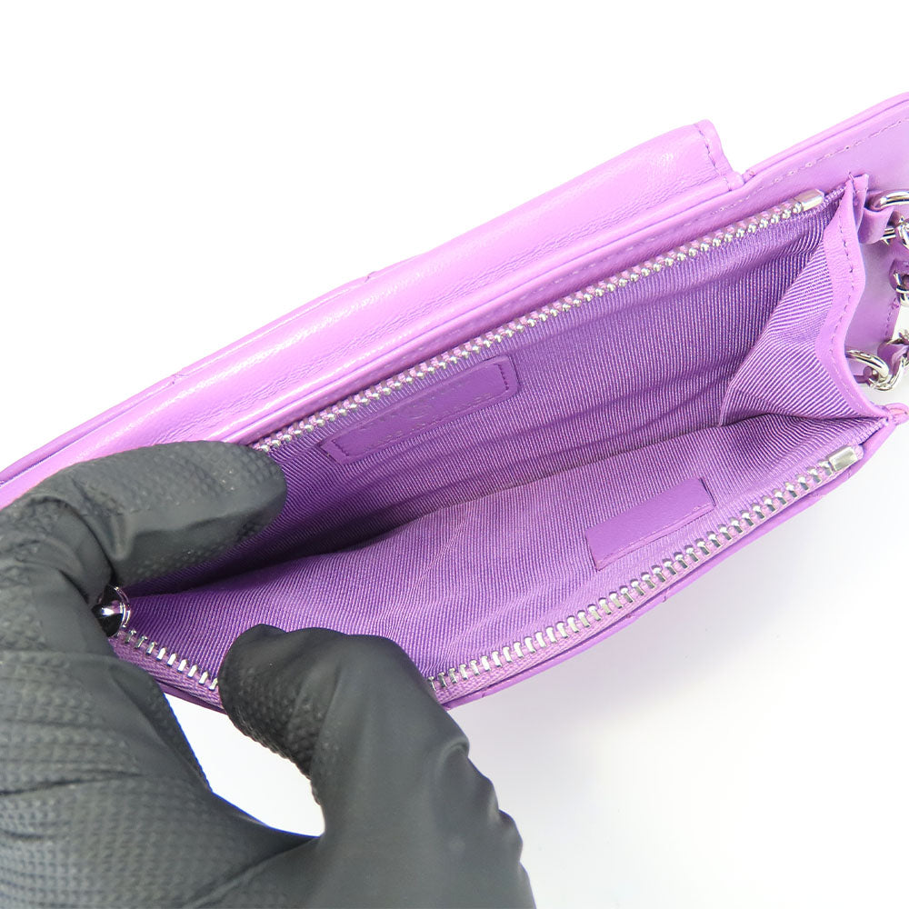 CHANEL Shoulder Bag lambskin purple Matrasse Women Used Authentic